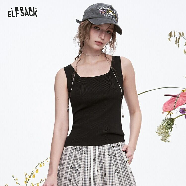ELFSACK インナー スクエアネック ノースリーブ キャミソール