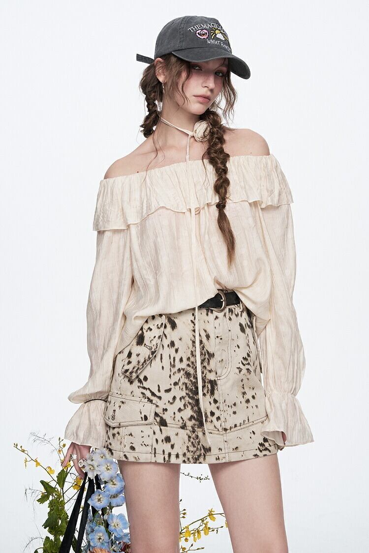 ELFSACK レトロ ヒョウ柄 Aライン ショート スカート