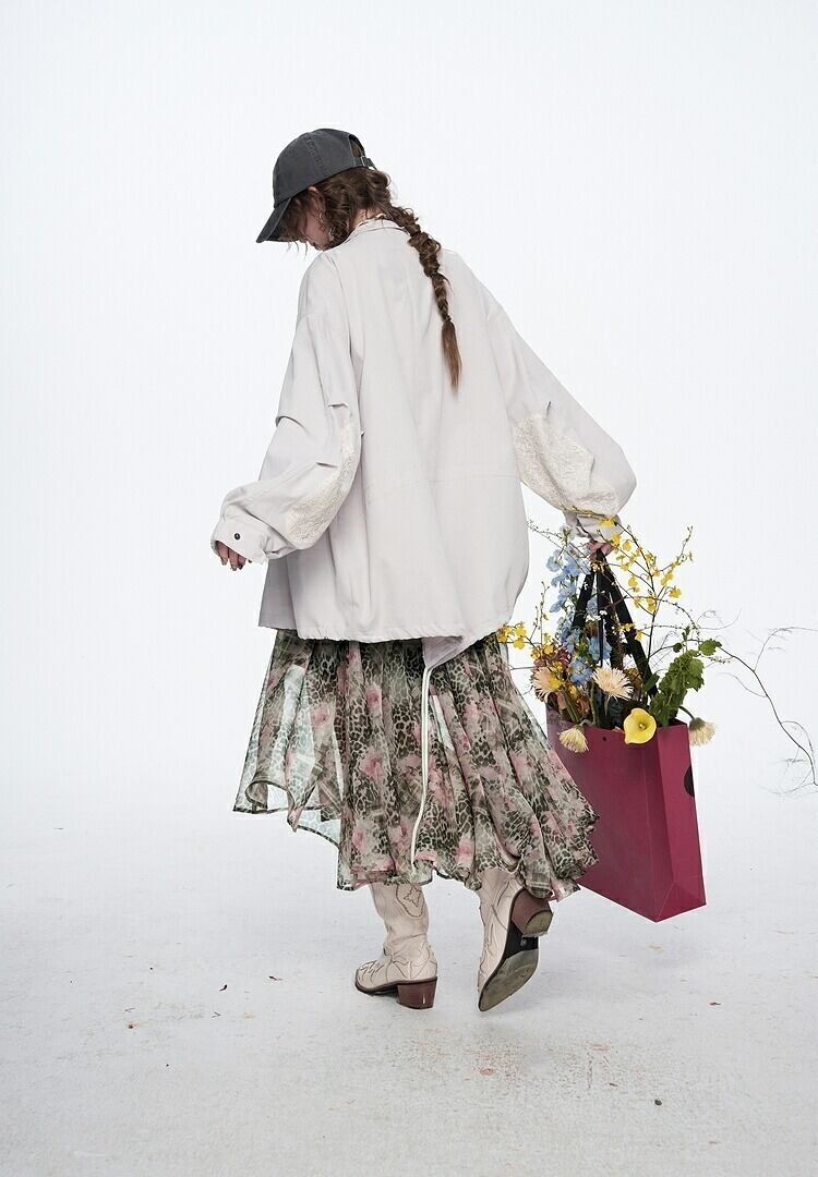 ELFSACK ミモレ丈 花柄 シフォン ハイウエスト スカート