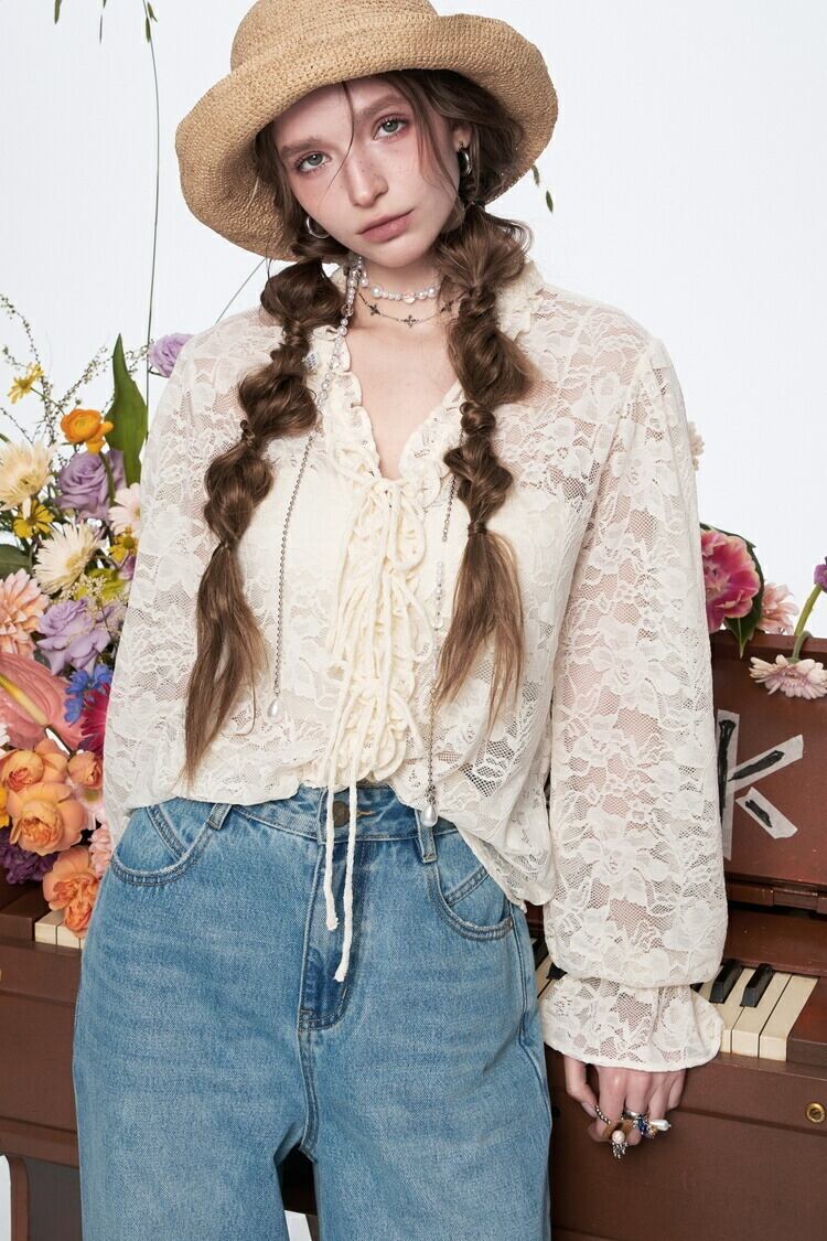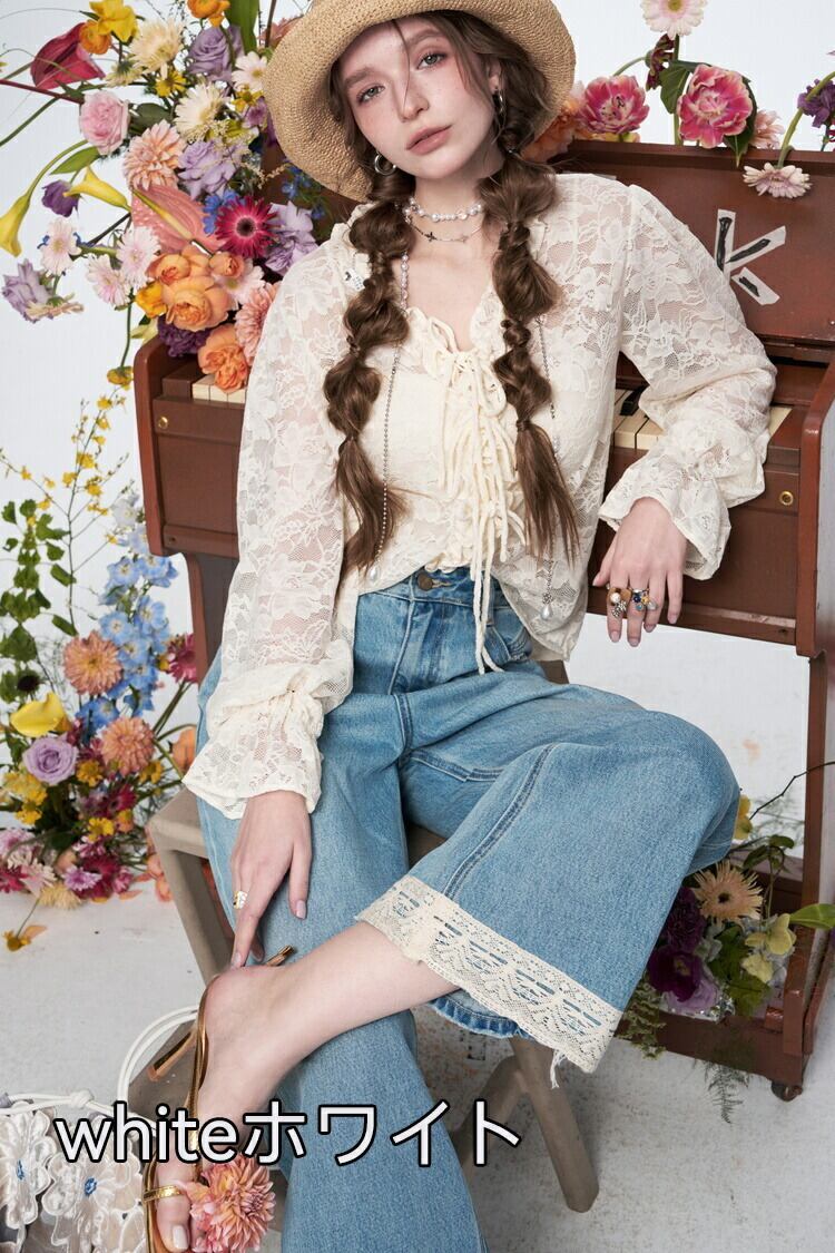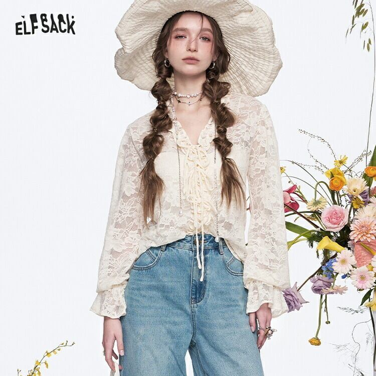 ELFSACK シフォン ブラウス トップス シャツ レース 長袖