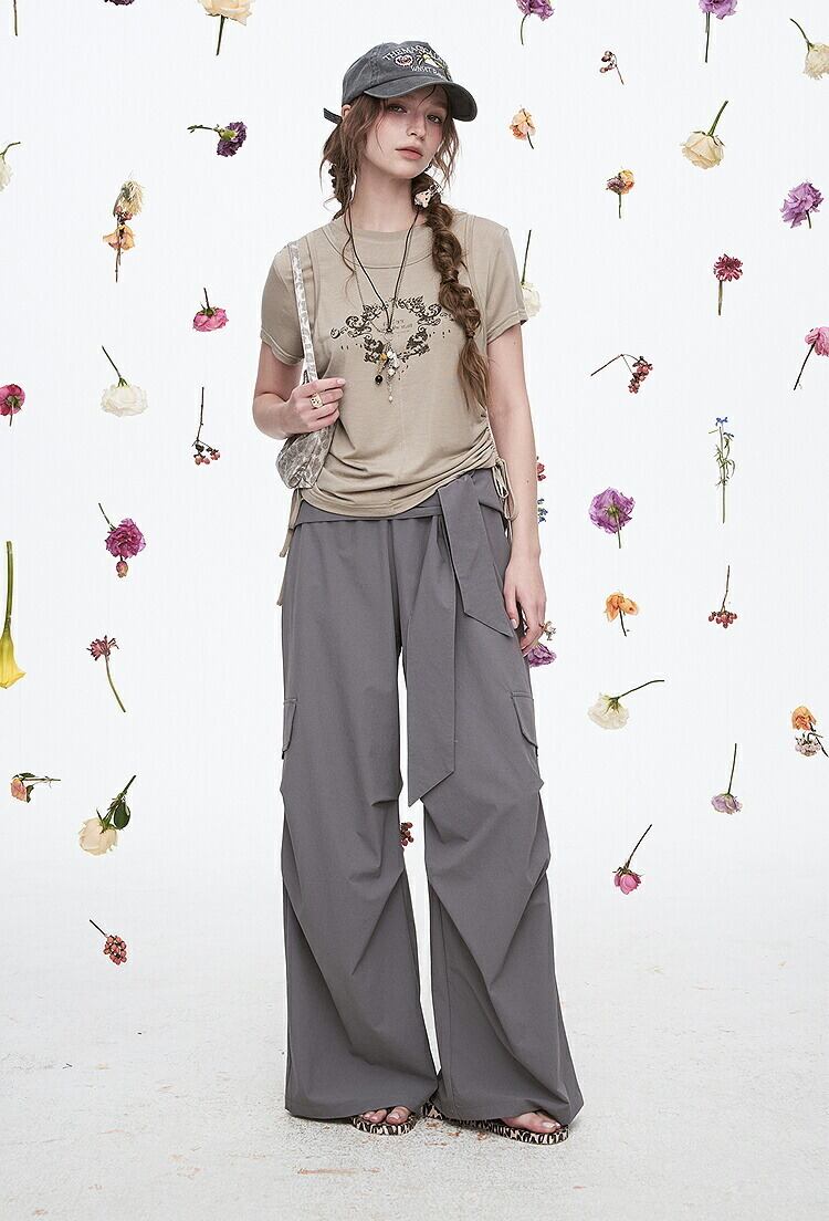 ELFSACK ズボン ボトムス カーゴパンツ グレー パンツ ゆったり