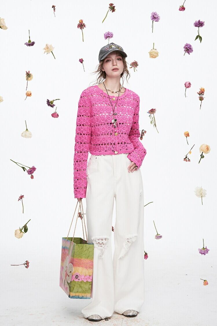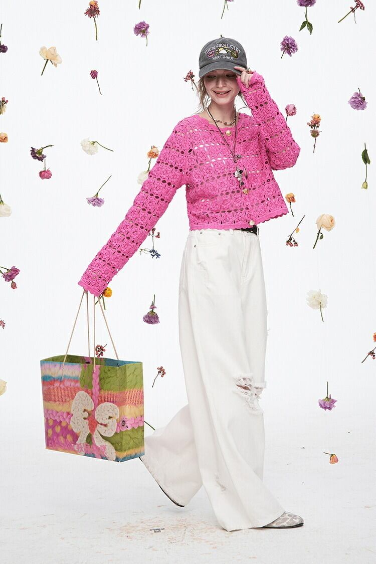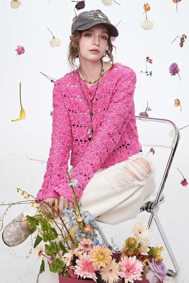 ELFSACK カーディガン トップス シースルー 長袖 ピンク