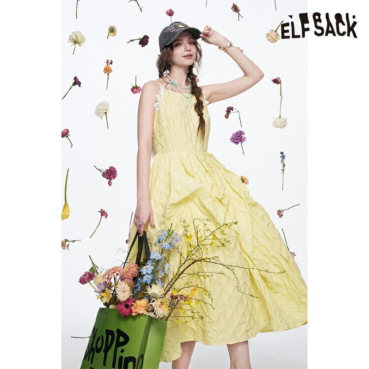 ELFSACK ノースリーブ ミモレ丈 レース ワンピース