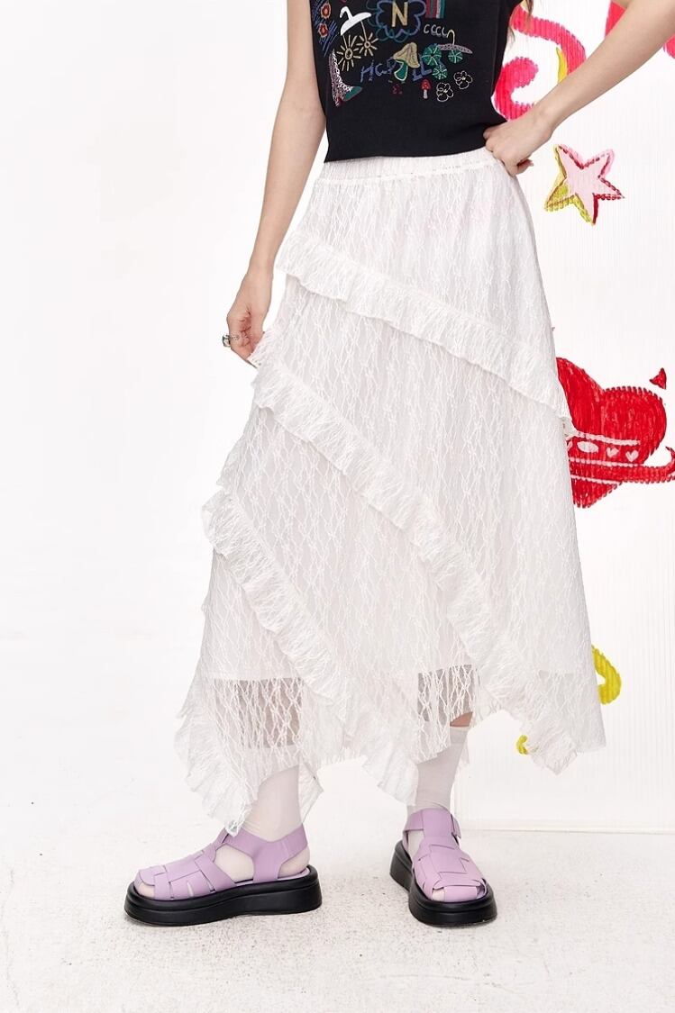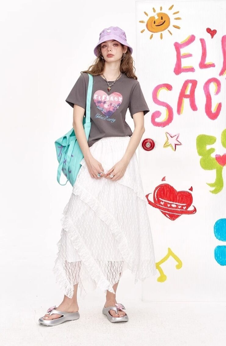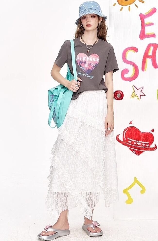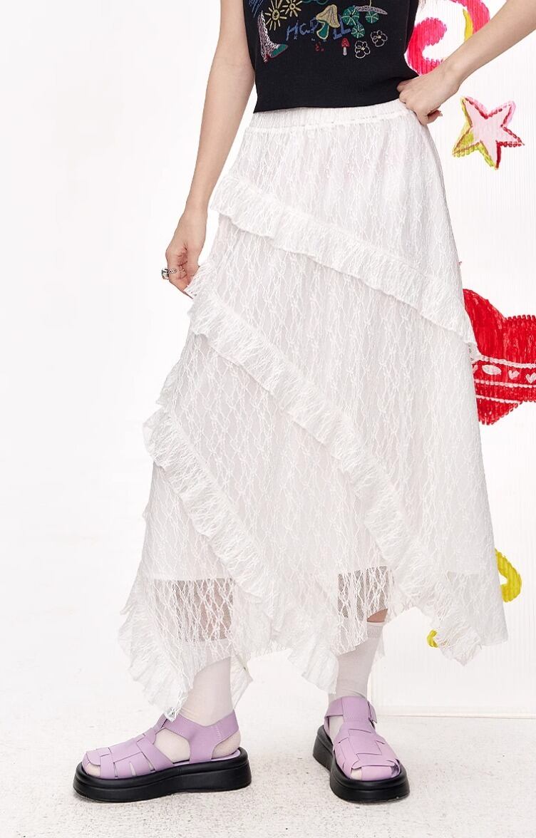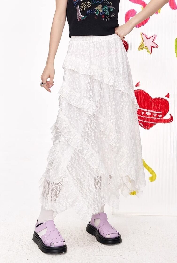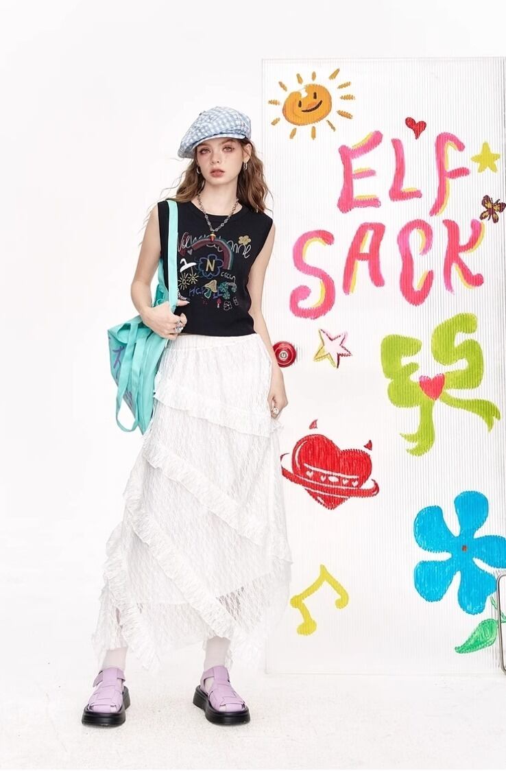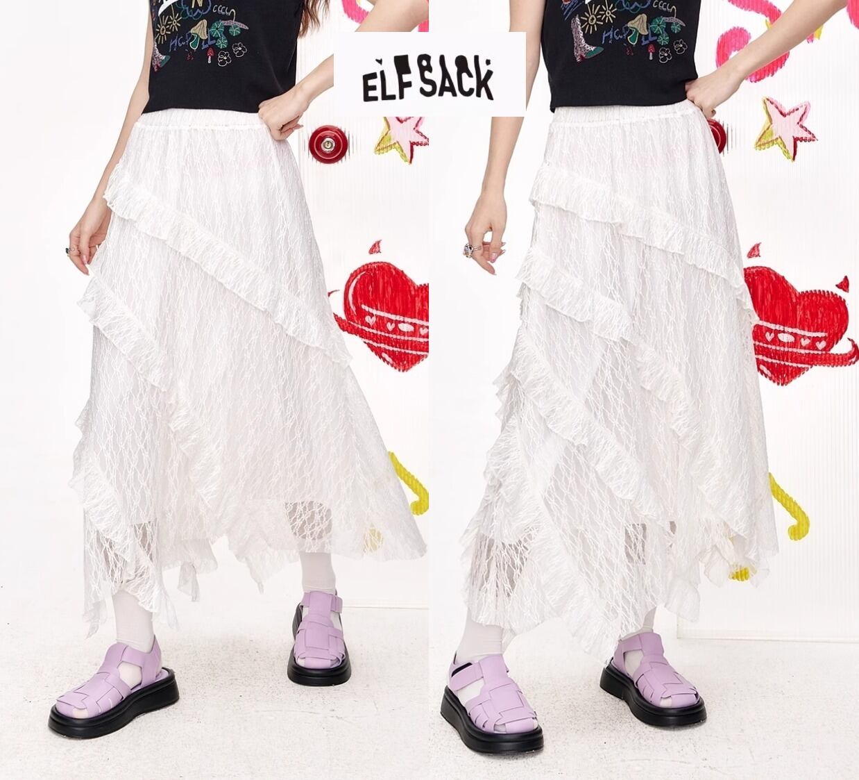 ELF SACK キュート ロング スカート レースアップ フリル