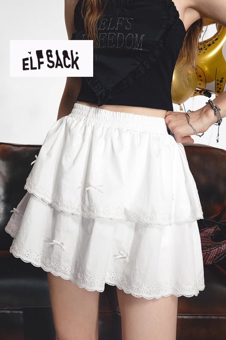 ELF SACK キュート ホワイト カジュアル ミニスカート