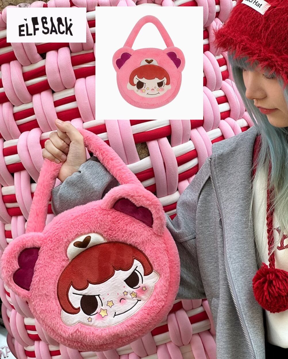 ELF SACK キュート もこもこ ピンク くま ハンドバッグ