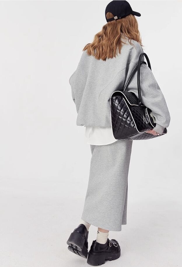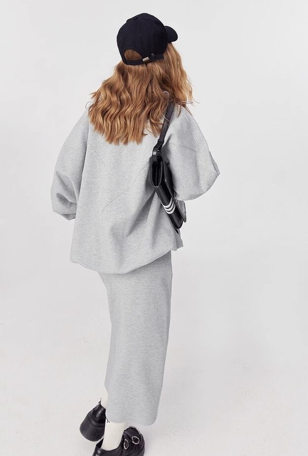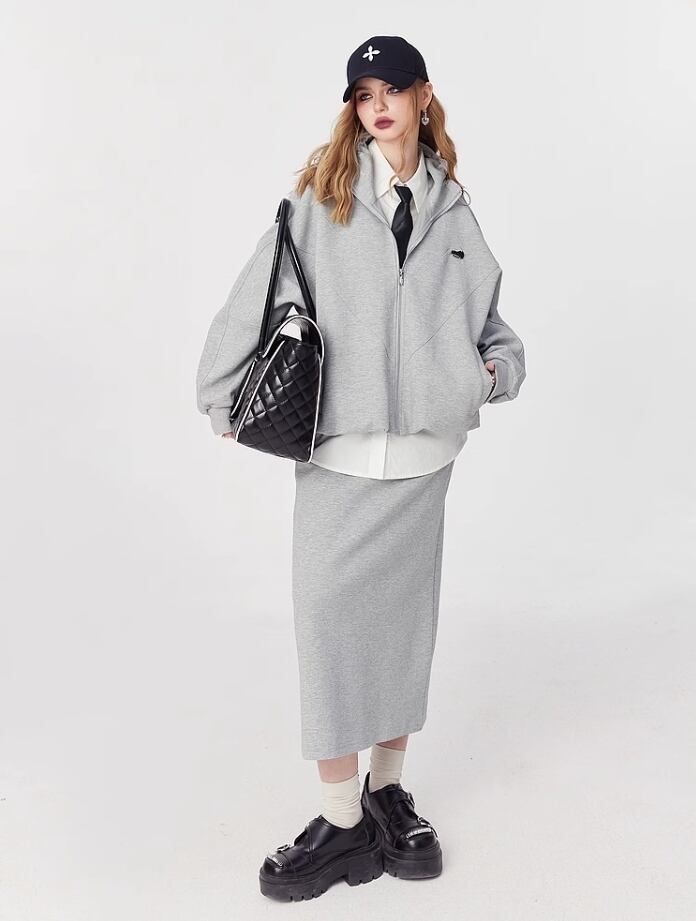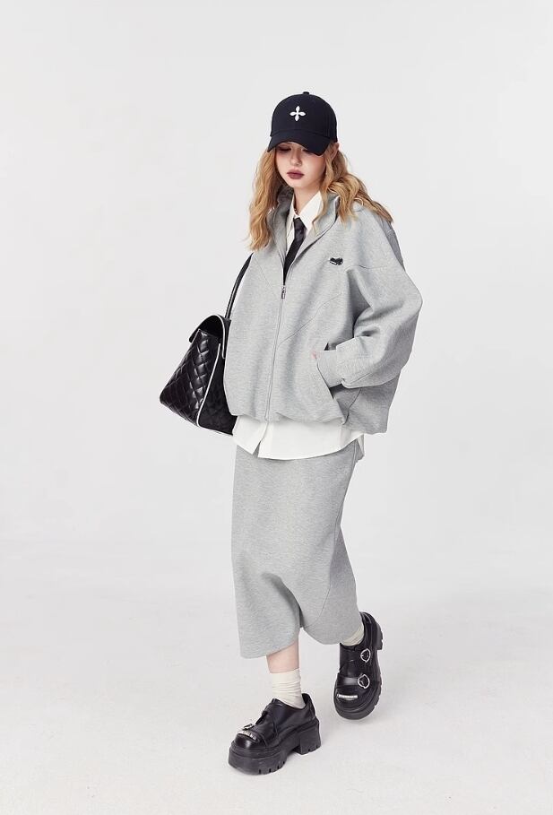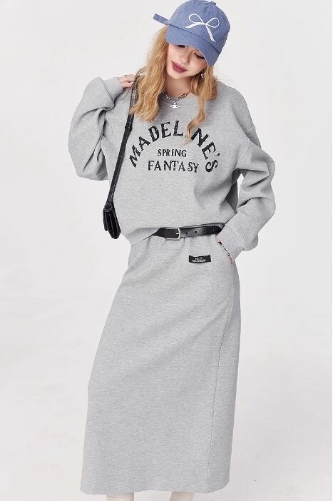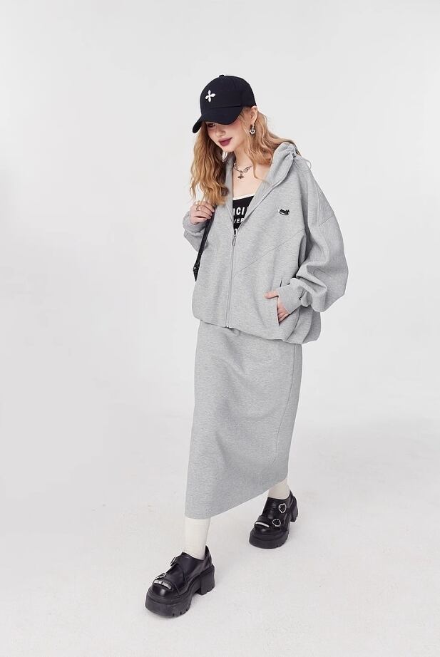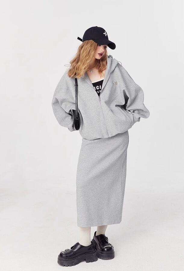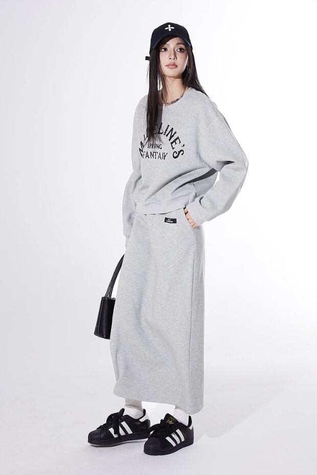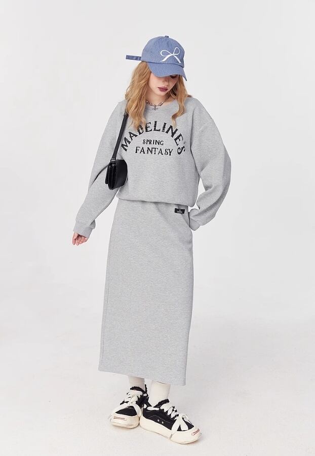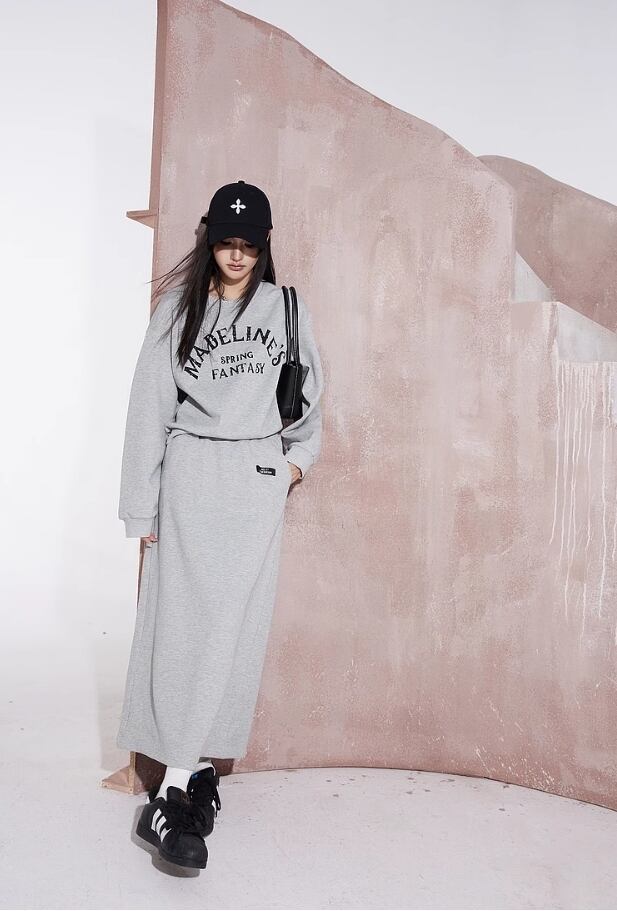 ELF SACK コットン ストリート カジュアル ロングスカート グレー
