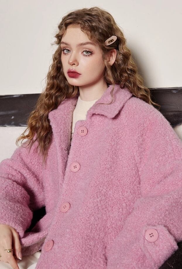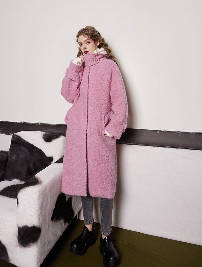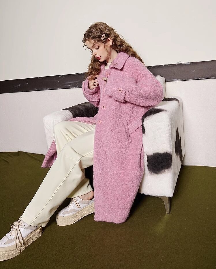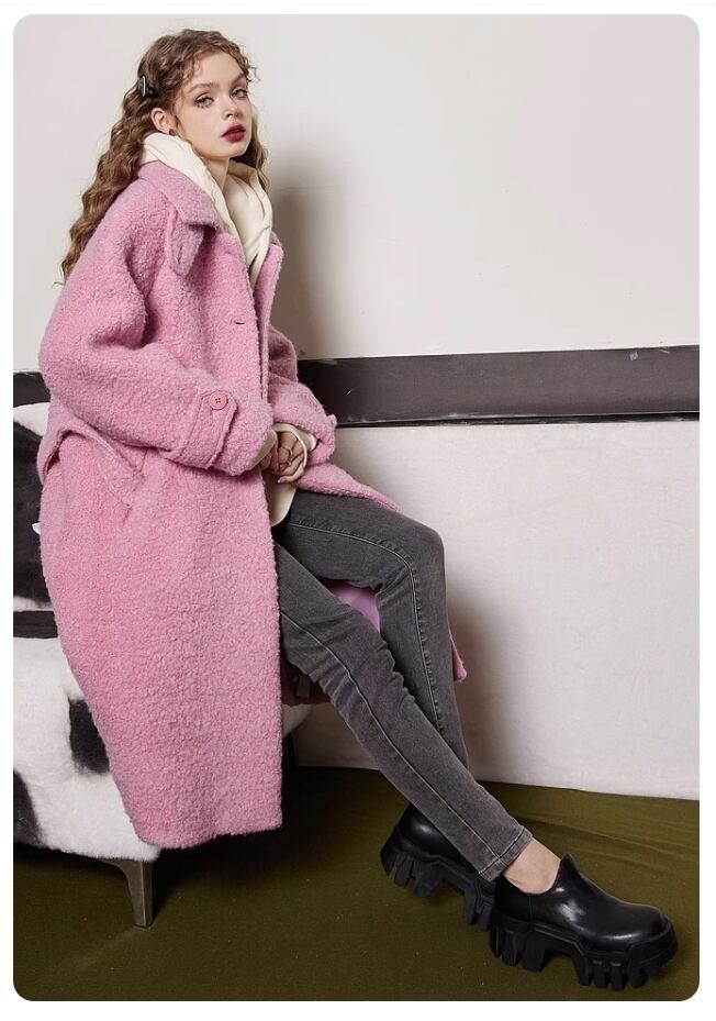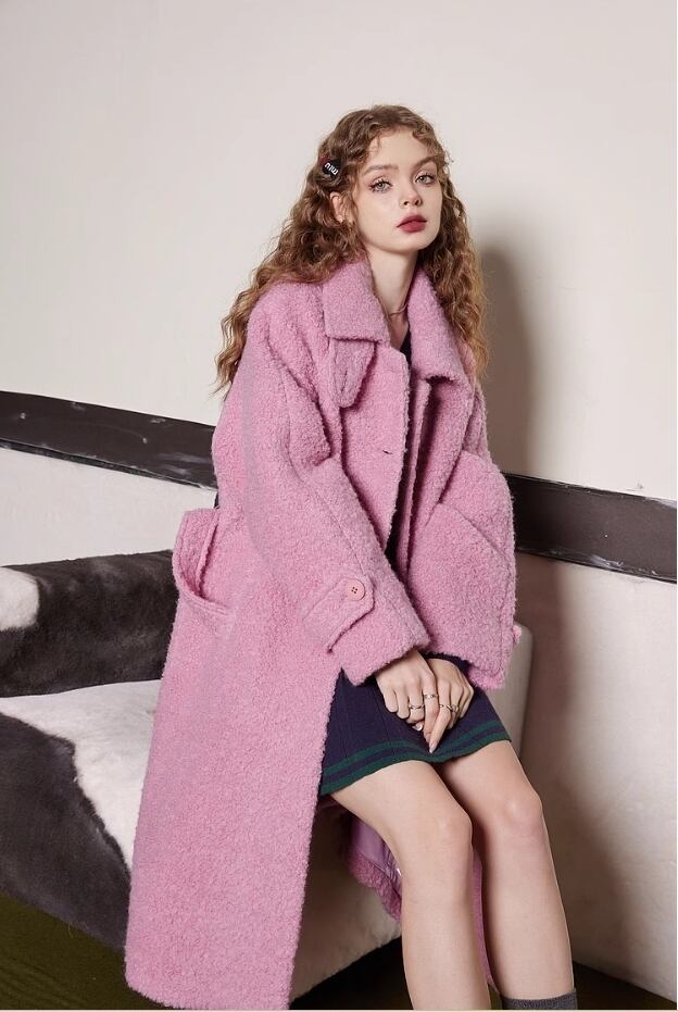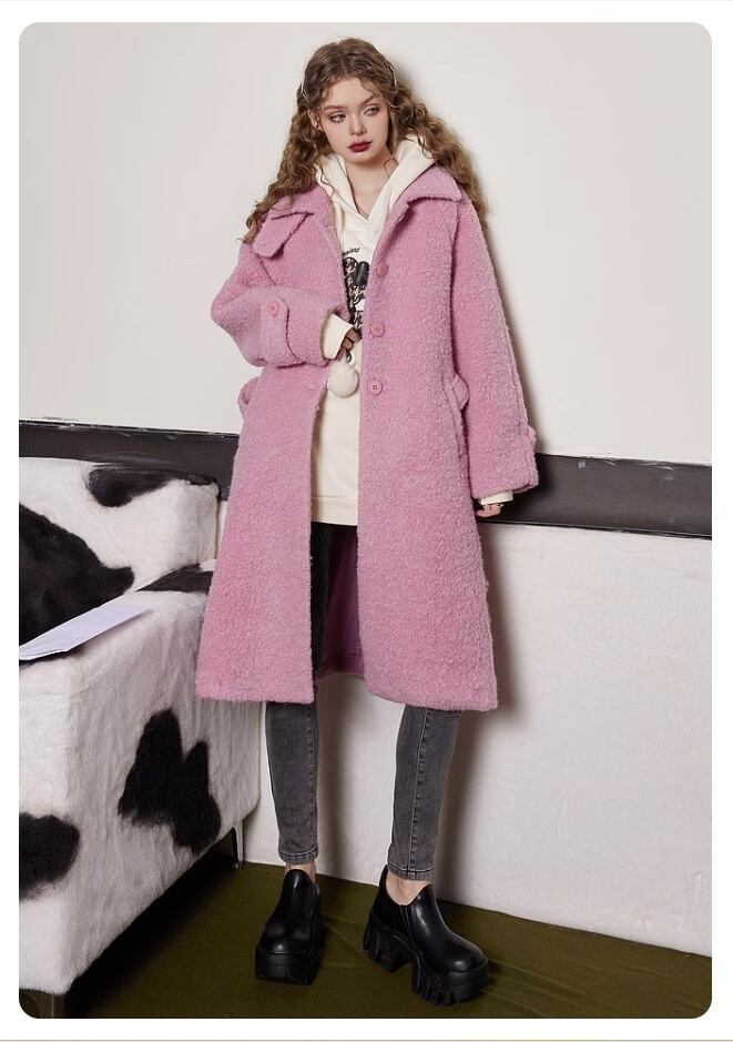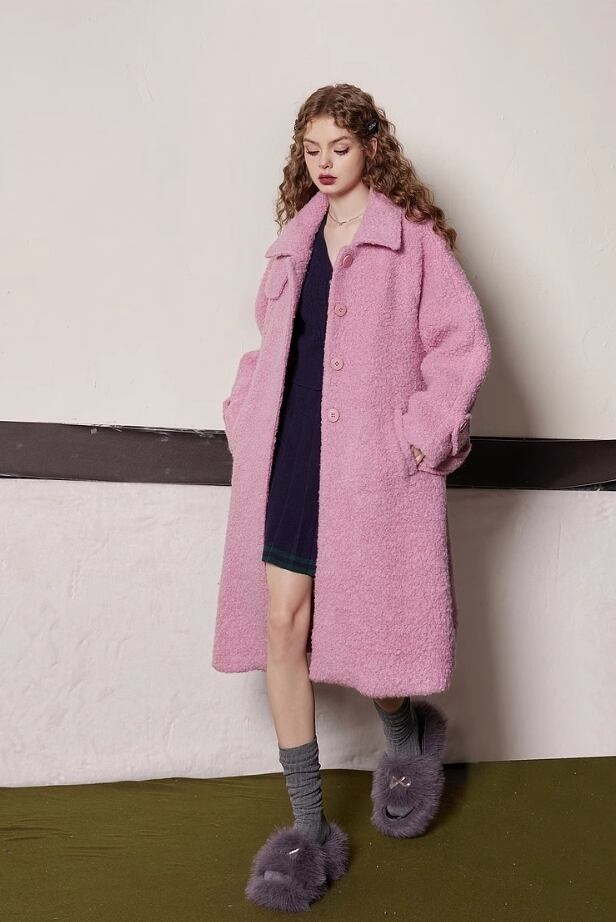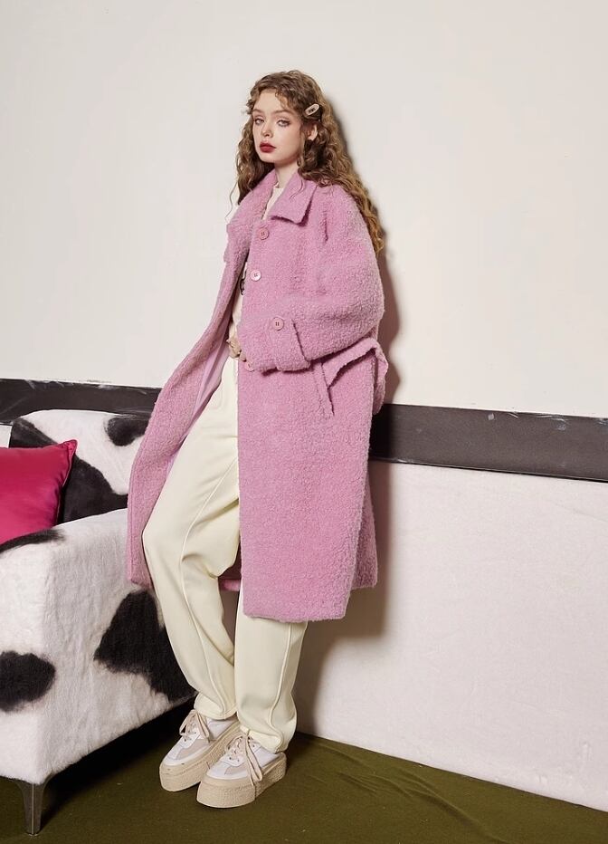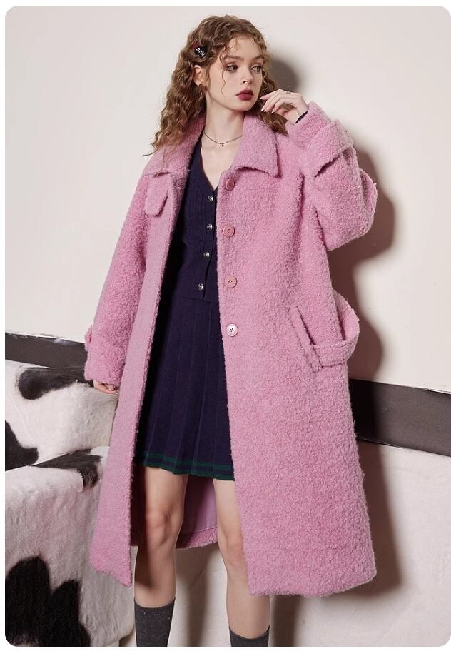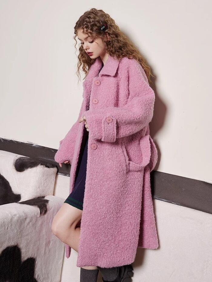 ELF SACK モノカラー ロング丈 ウール ロングコート ピンク