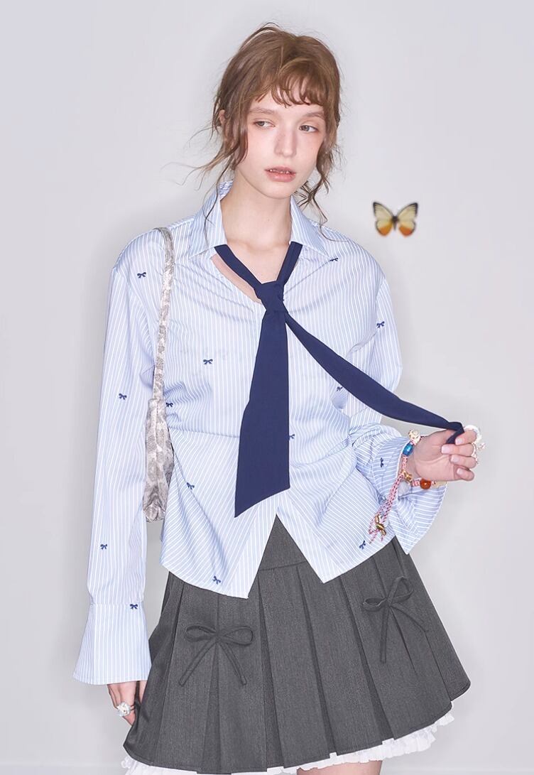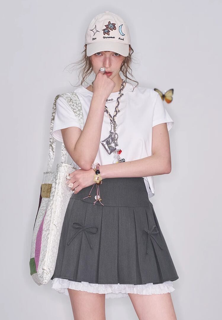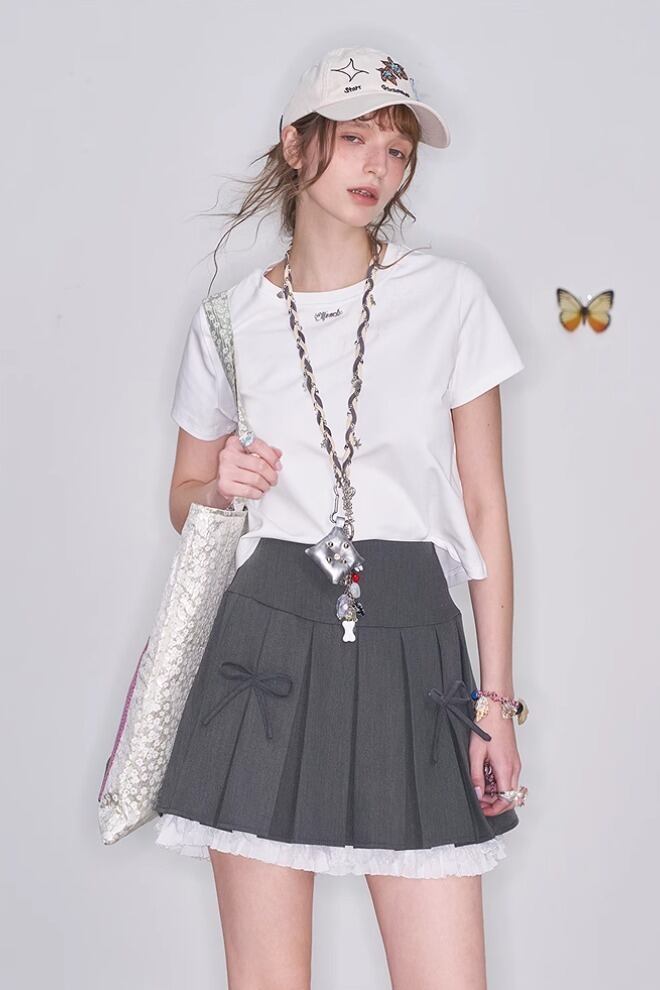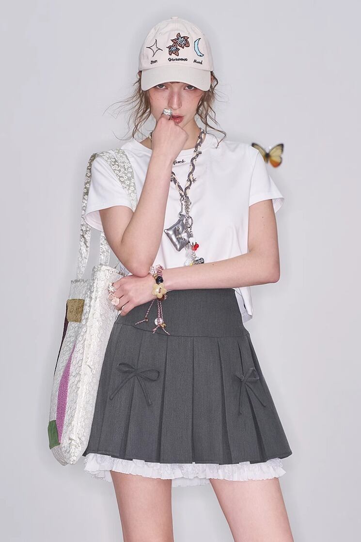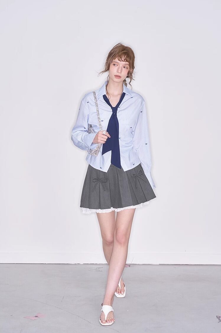 ELF SACK グレー リボン ミニスカート プリーツスカート