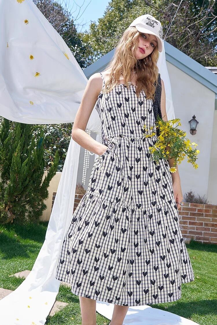 ELF SACKハート チェック柄 キャミソール ロング ワンピース