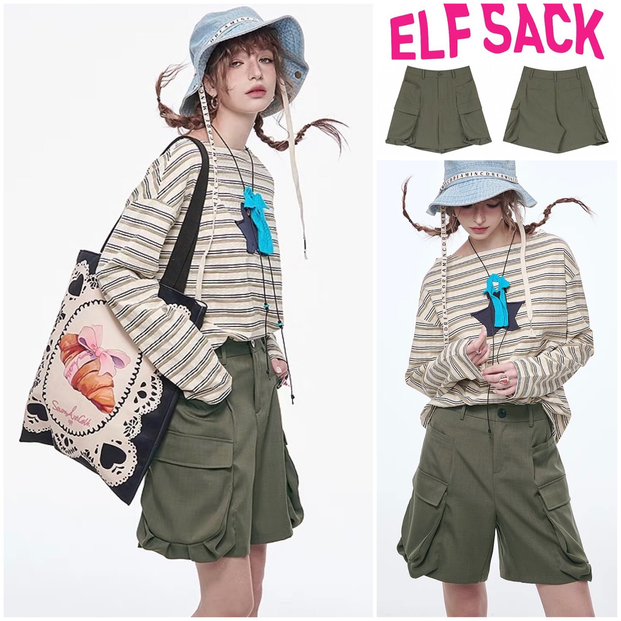 ELF SACK レトロ 作業服風 五分丈 カジュアル ショート パンツ