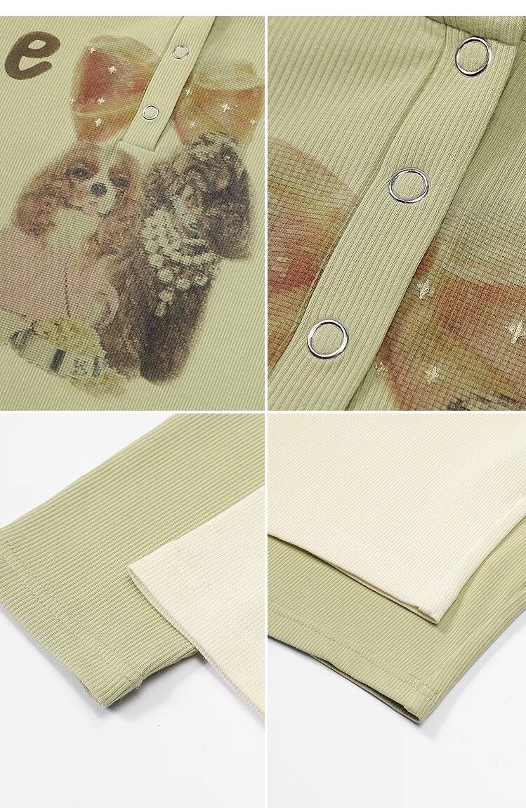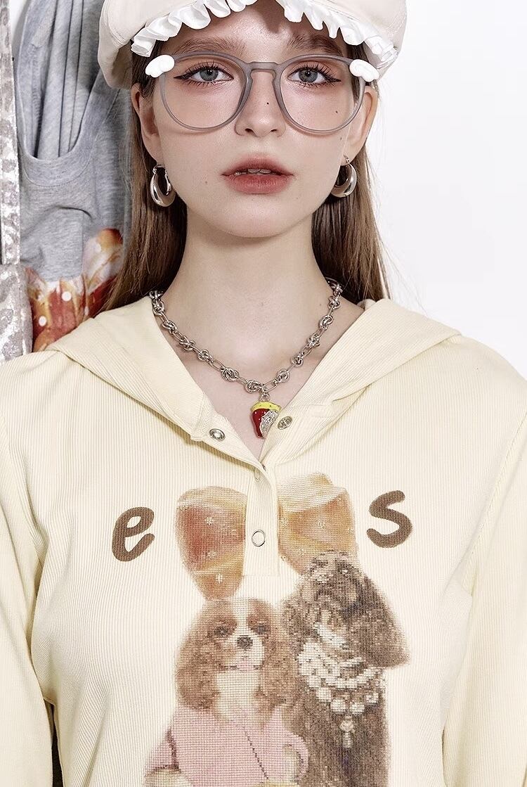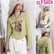 ELF SACK フード付 ドック柄 ショート丈 ロンT 長袖 Tシャツ