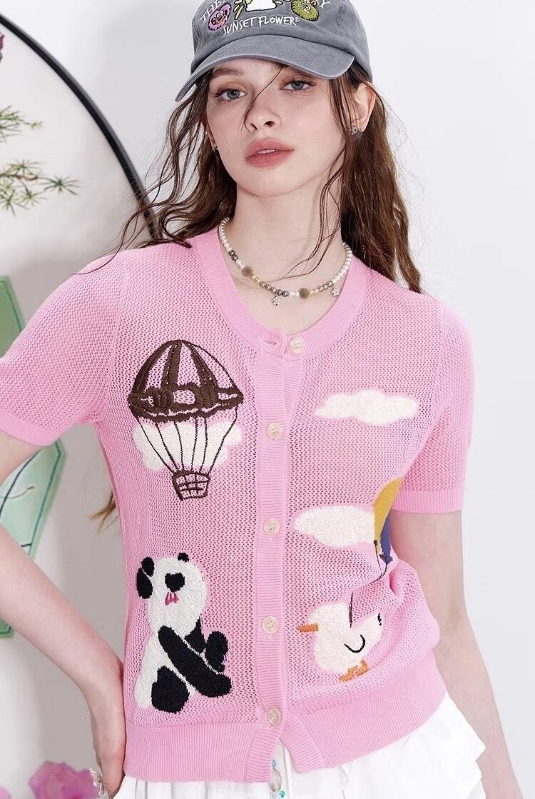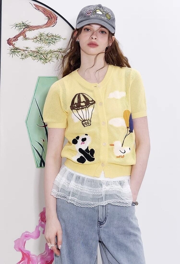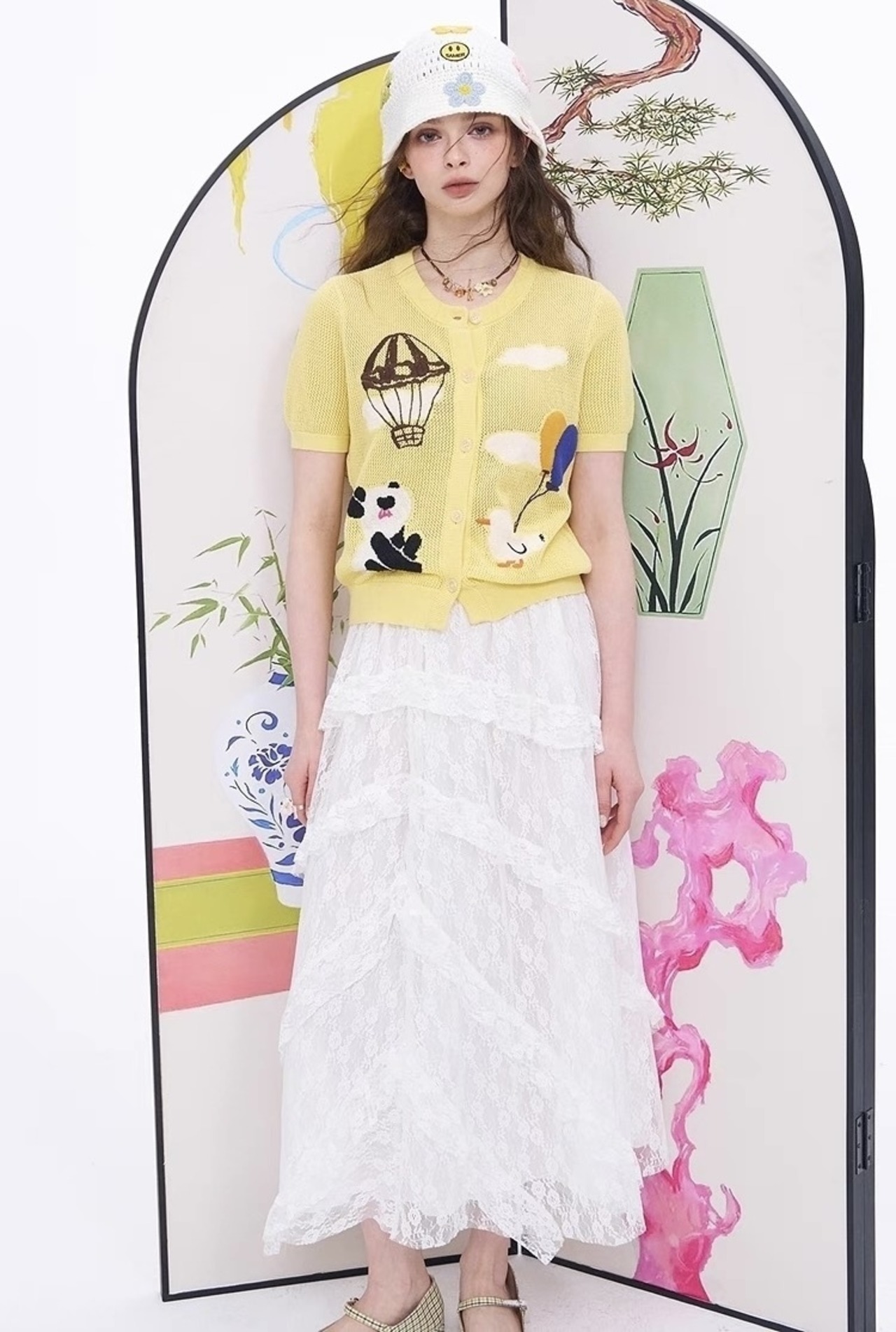 ELF SACK ガーリー ジャガード ニット カーディガン ピンク イエロー