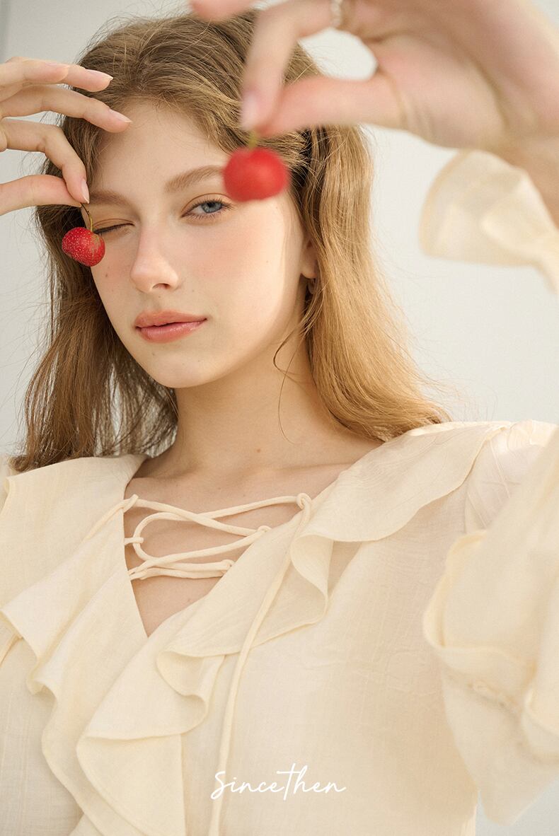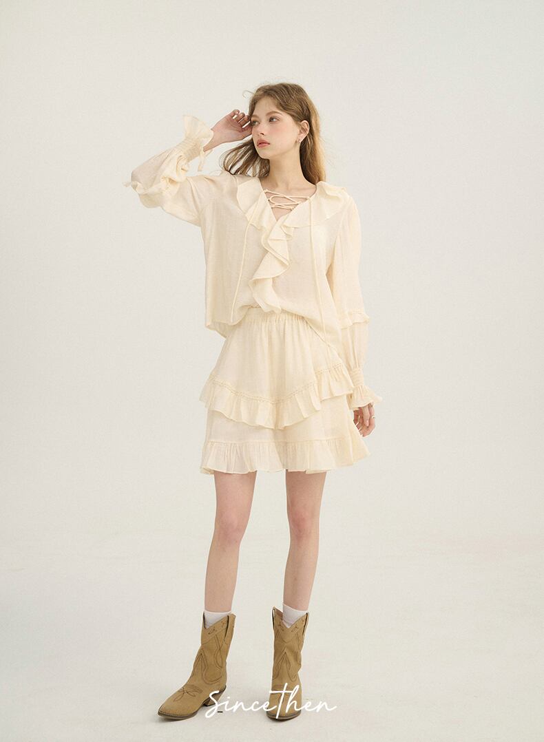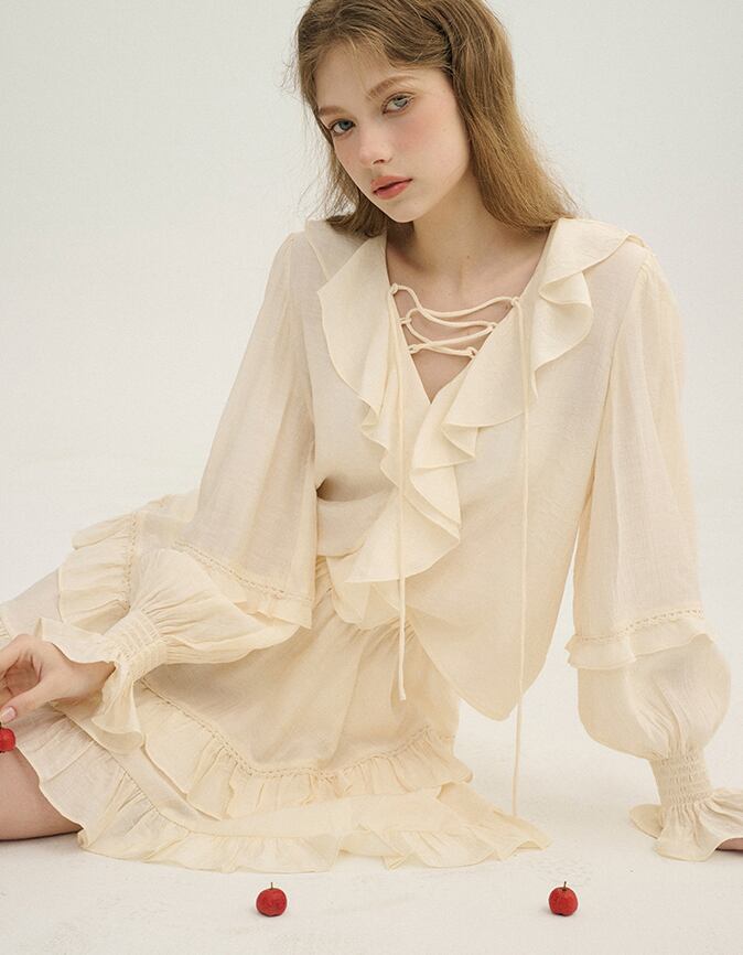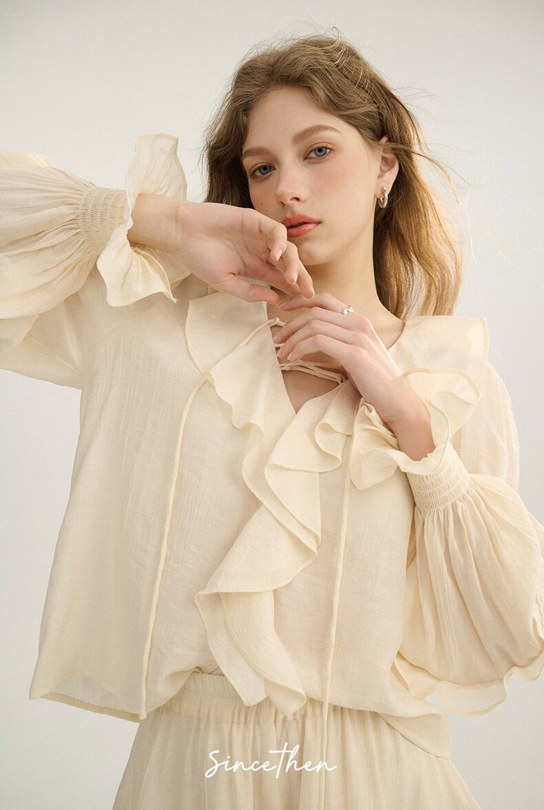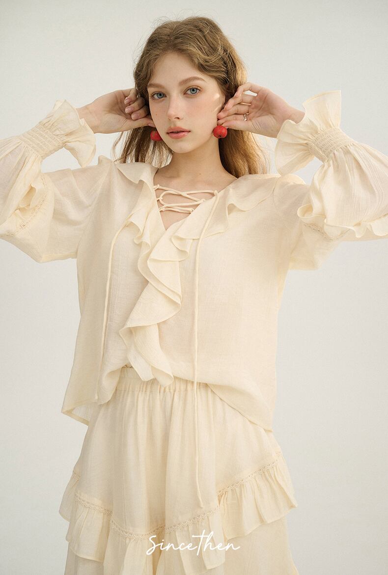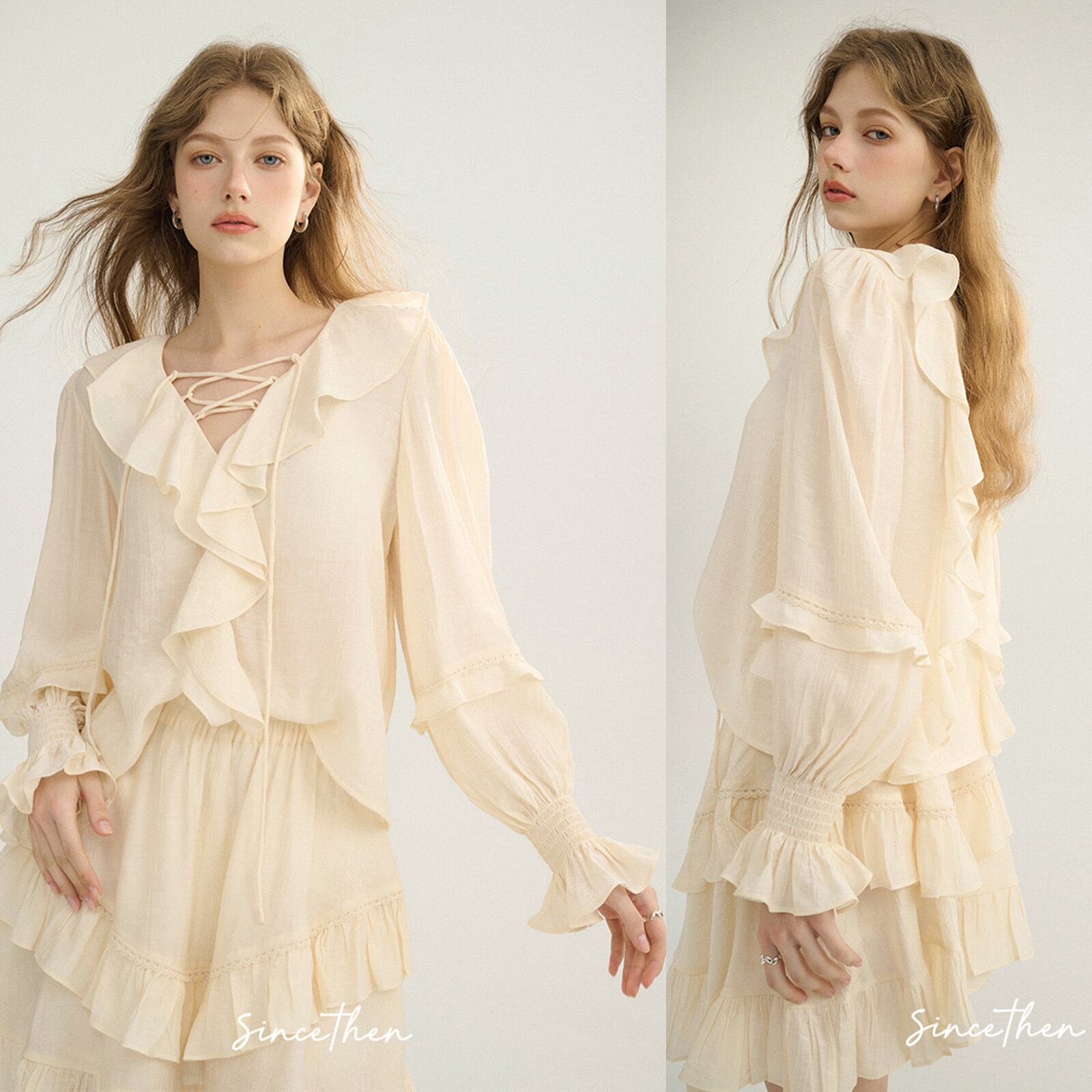 SinceThen キュート リボン フリル 長袖 ブラウス