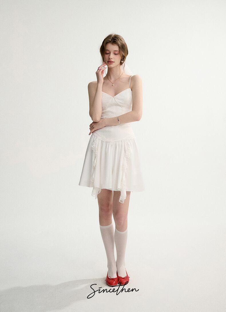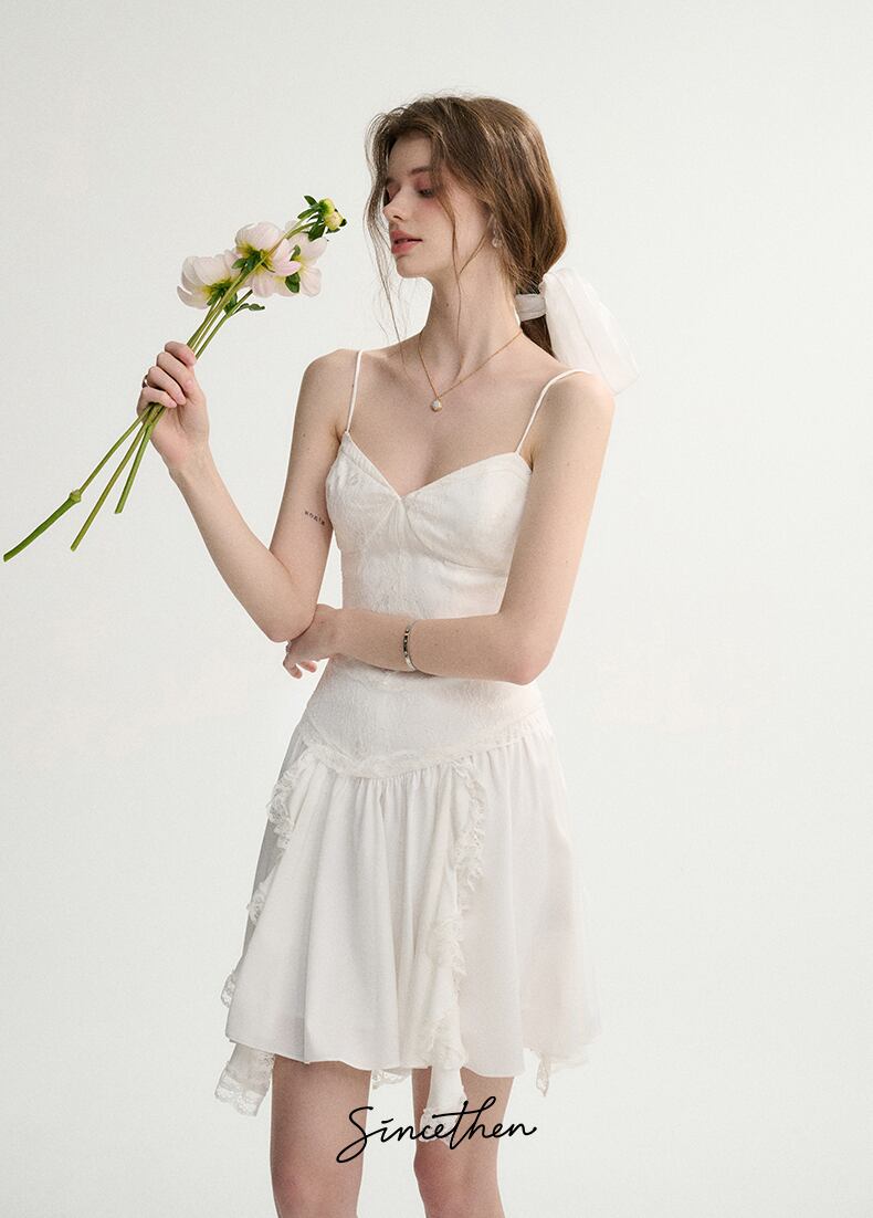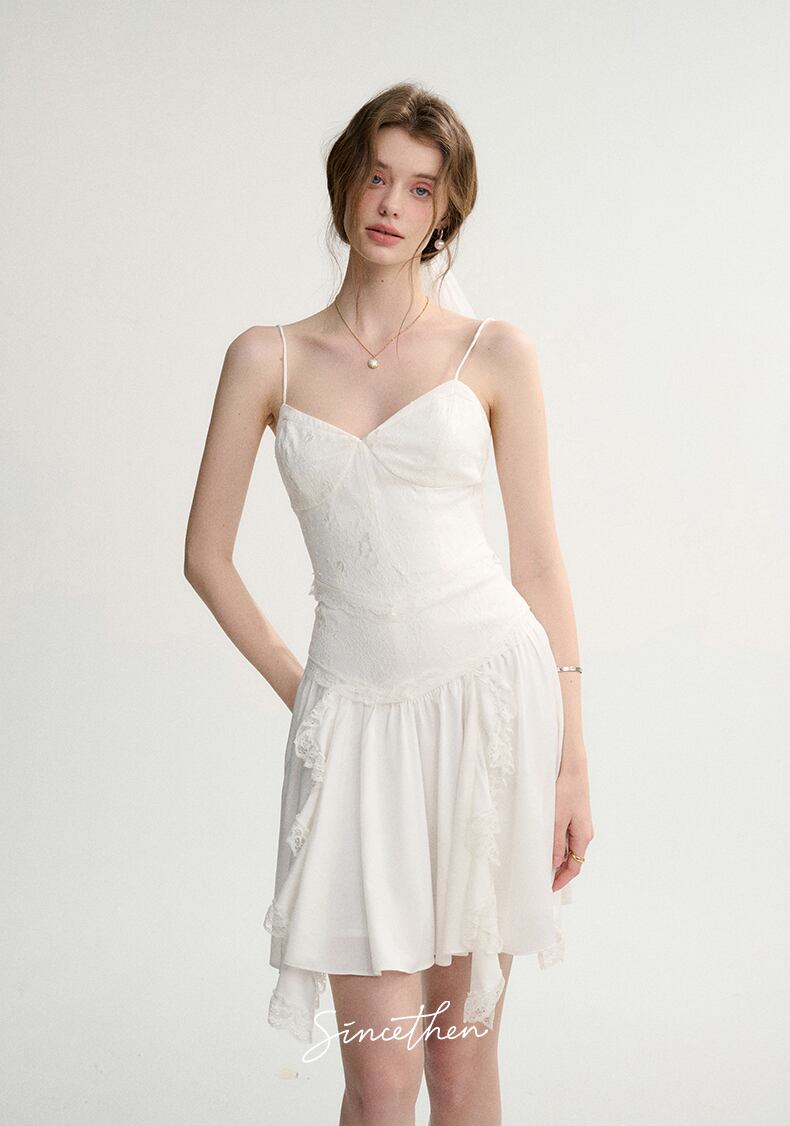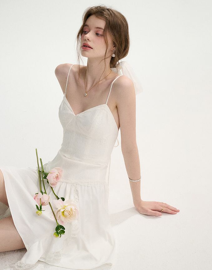 SinceThen レース リボン キャミワンピース ショート ホワイト