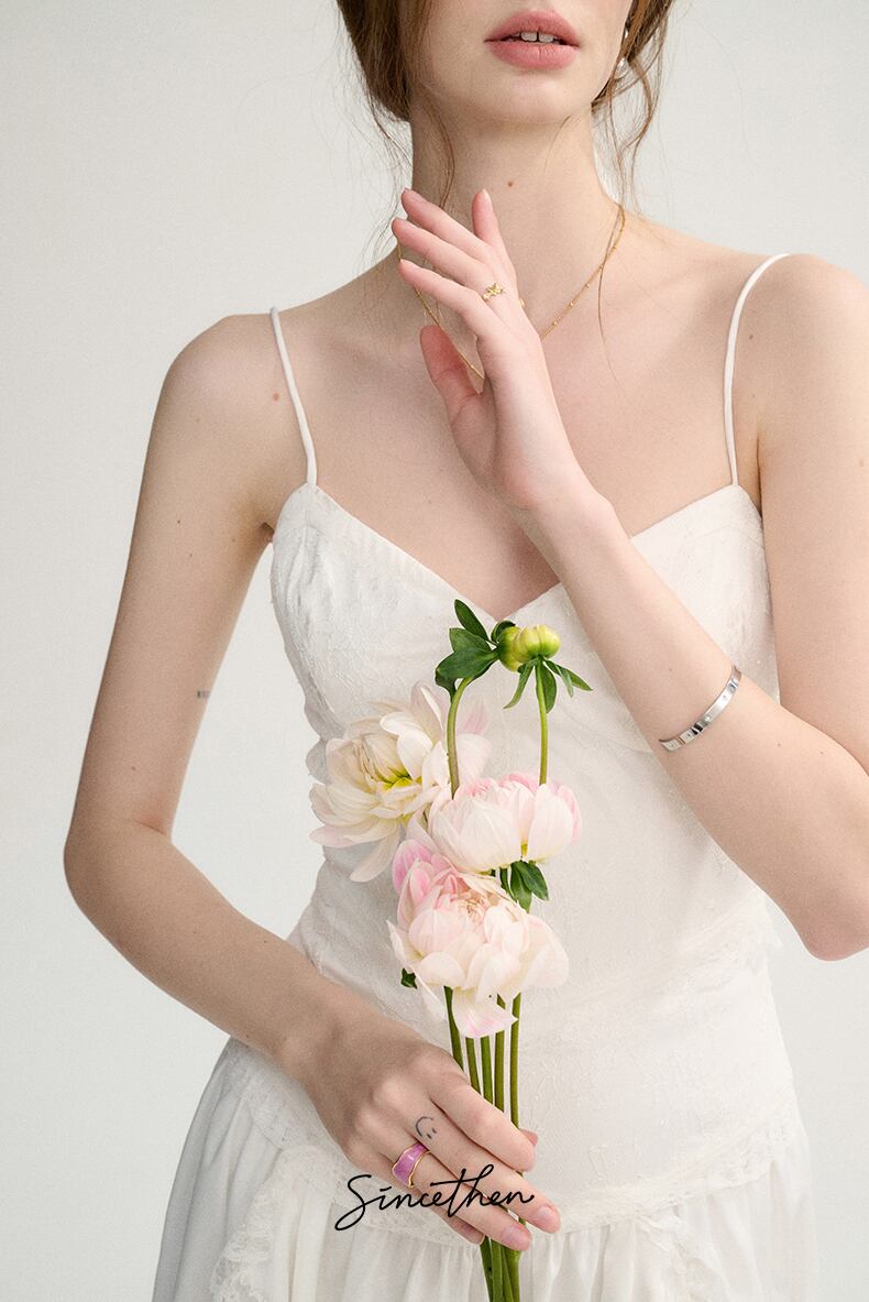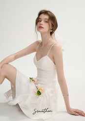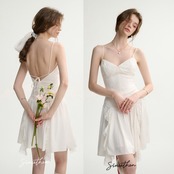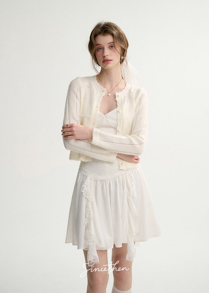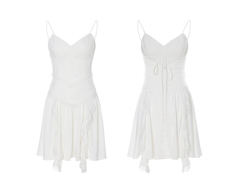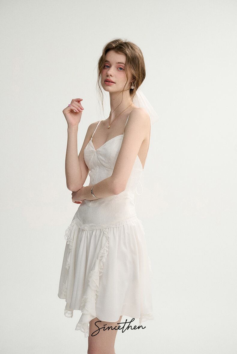 SinceThen レース リボン キャミワンピース ショート ホワイト