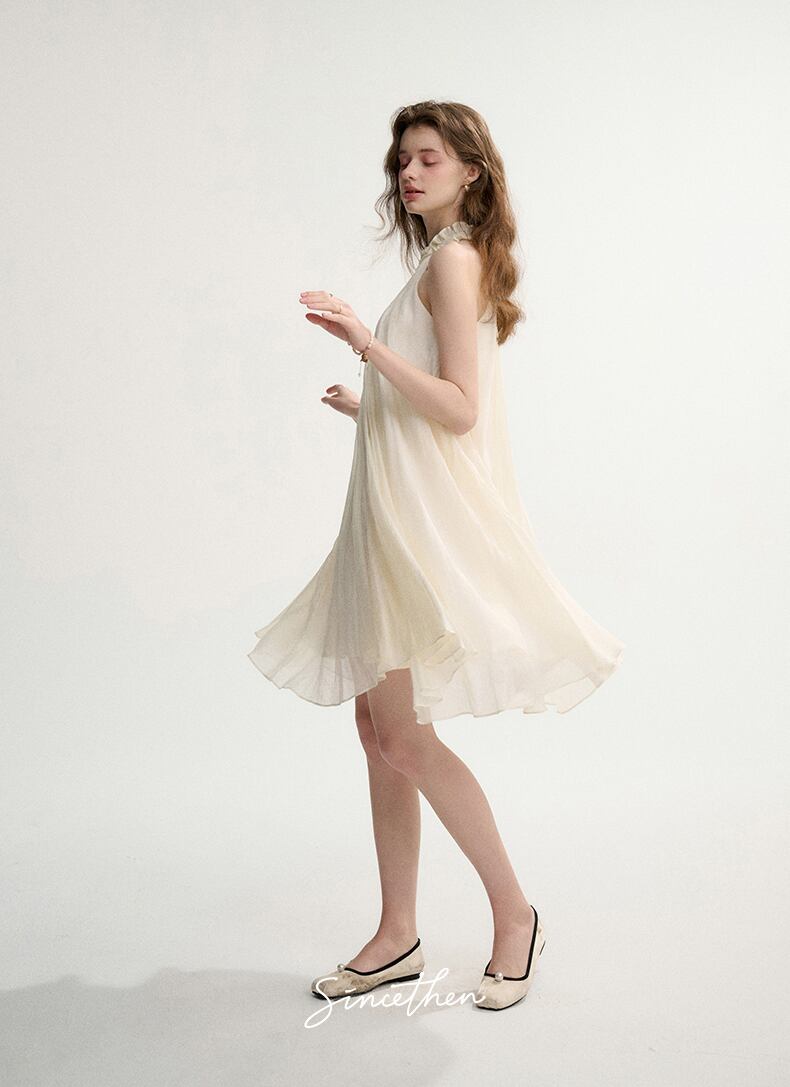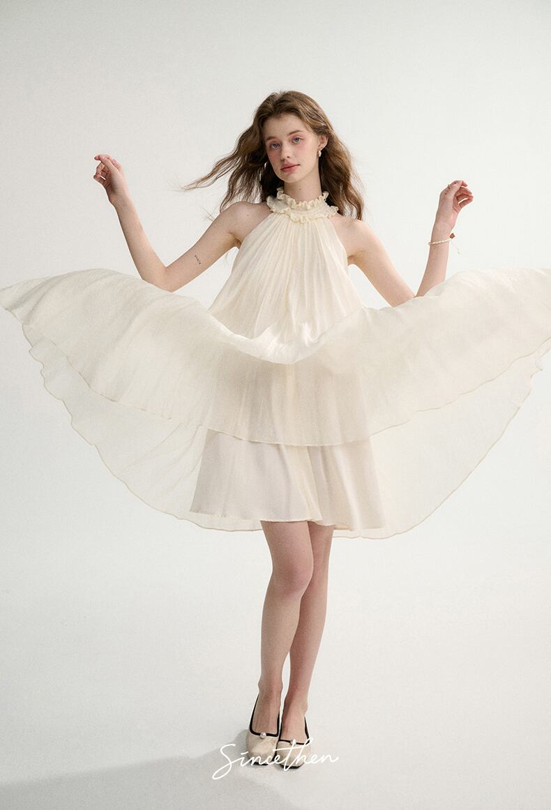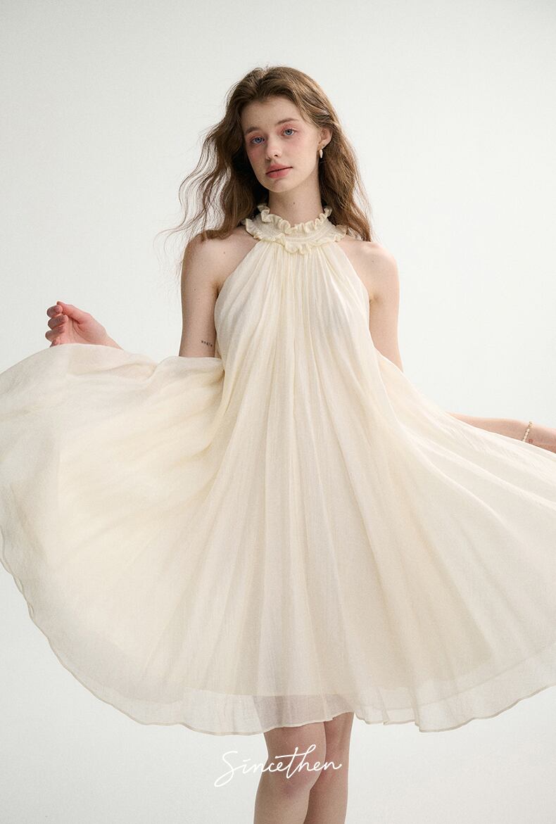 SinceThenフリル フレア ノースリープ ショート ワンピース