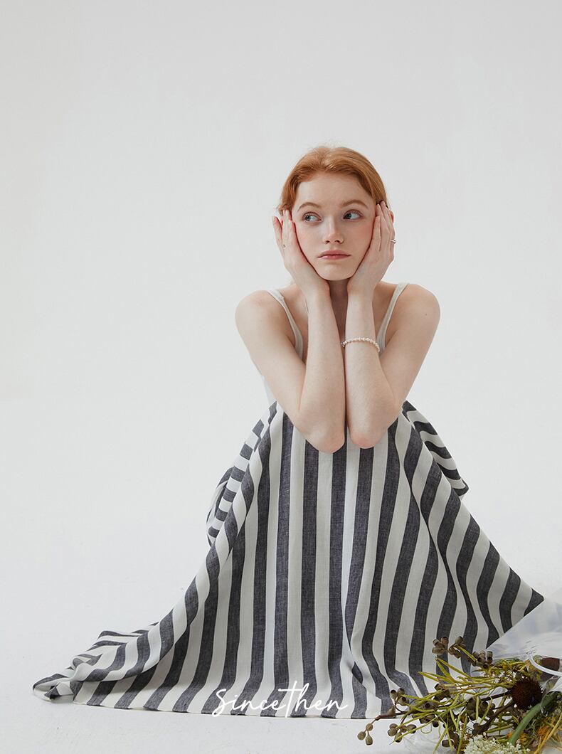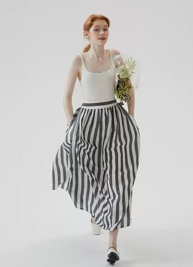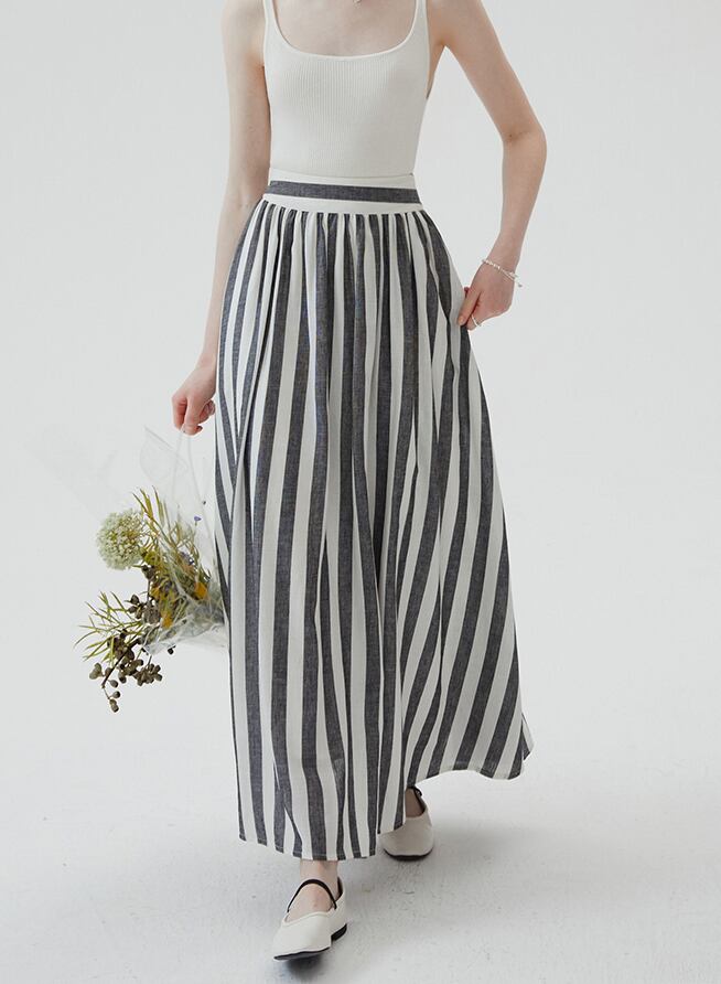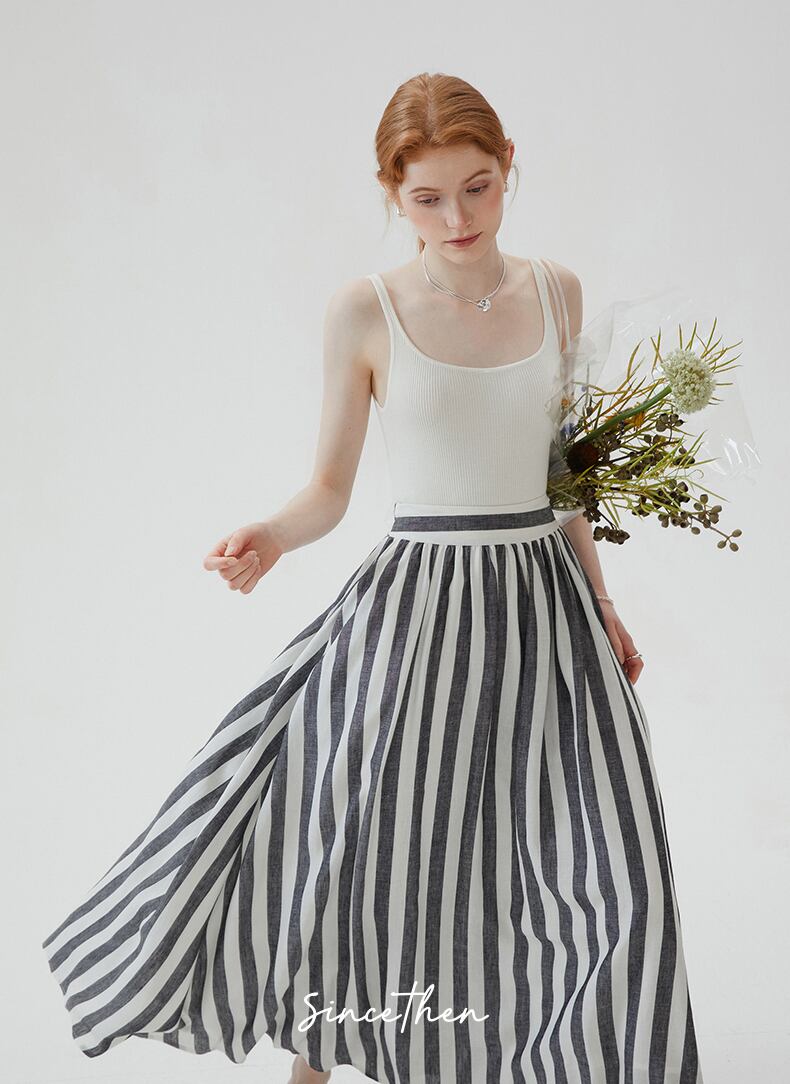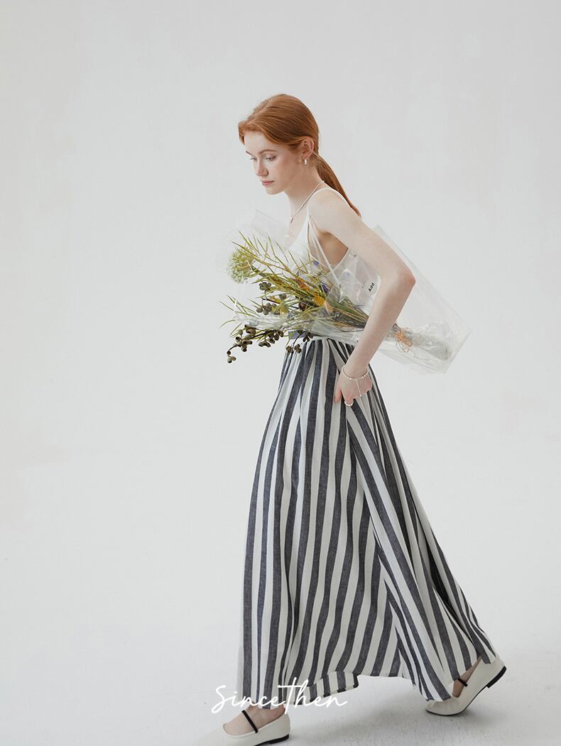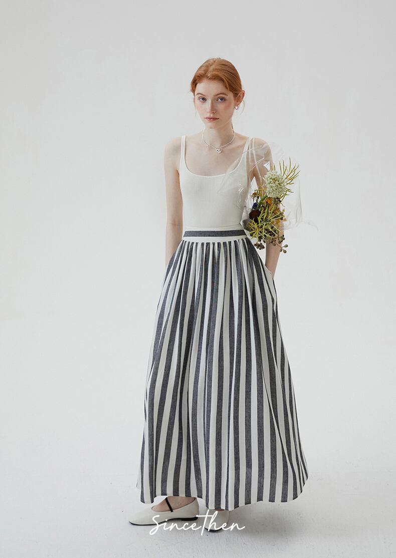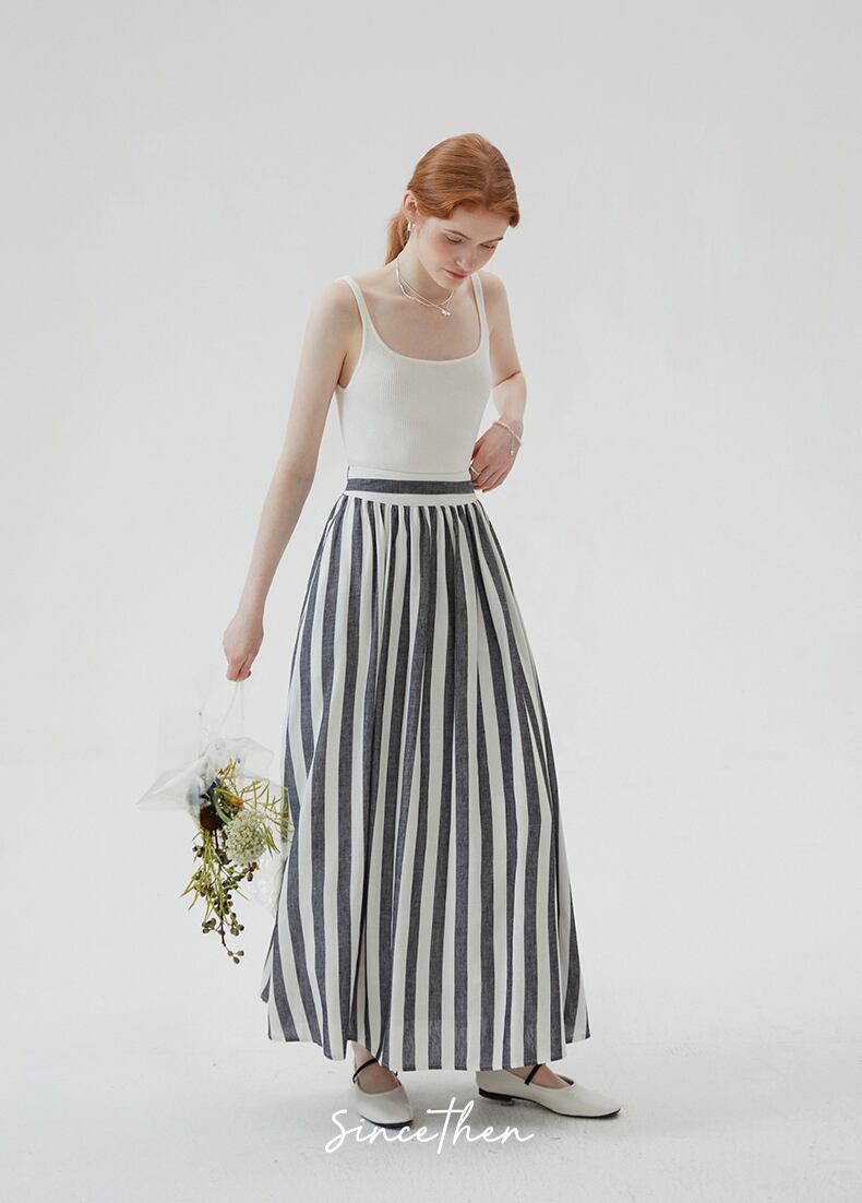 SinceThenストライプ プリーツ フレア ロング スカート