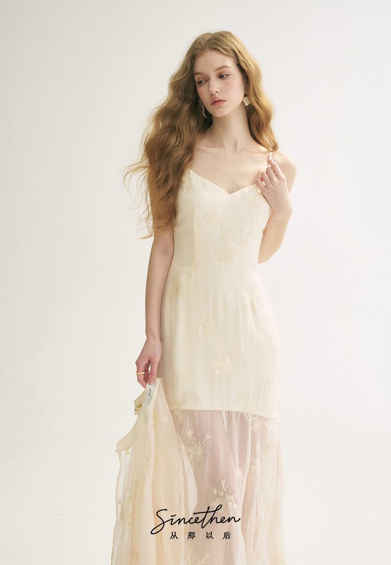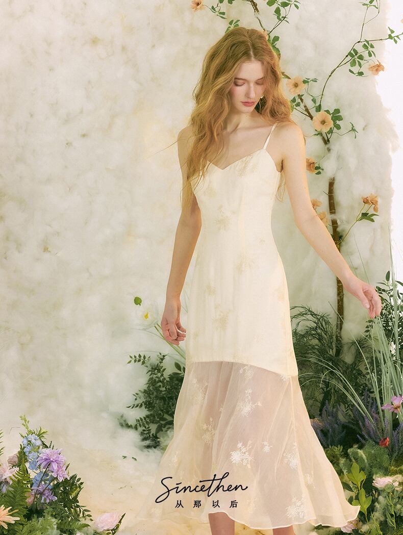 SinceThen エレガント 刺繍 マーメイド キャミワンピース