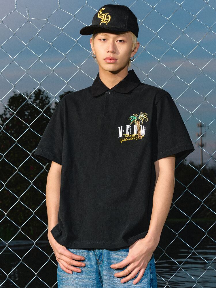 MEDM ルーズ ロゴ ブランド 半袖 ポロシャツ ユニセックス