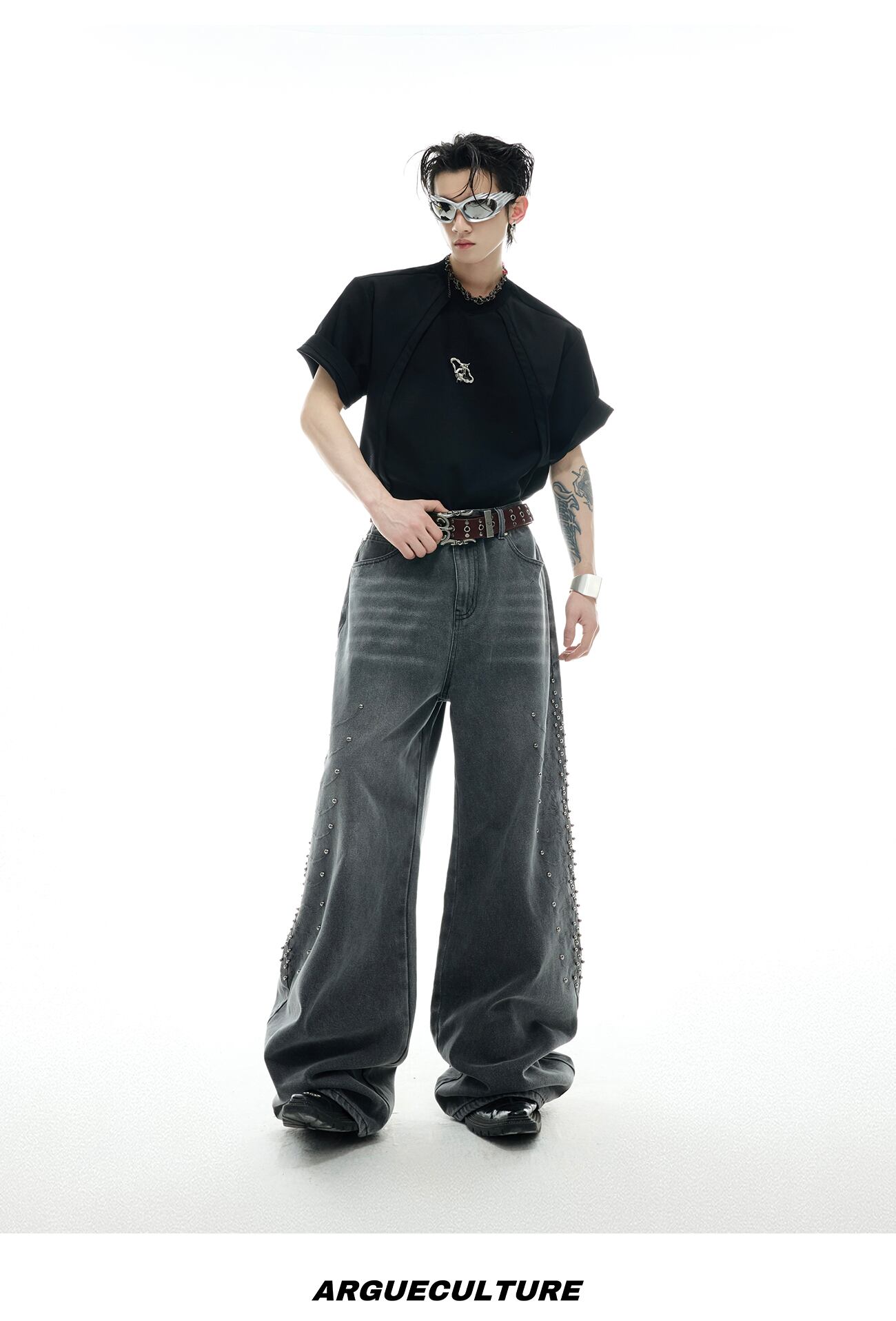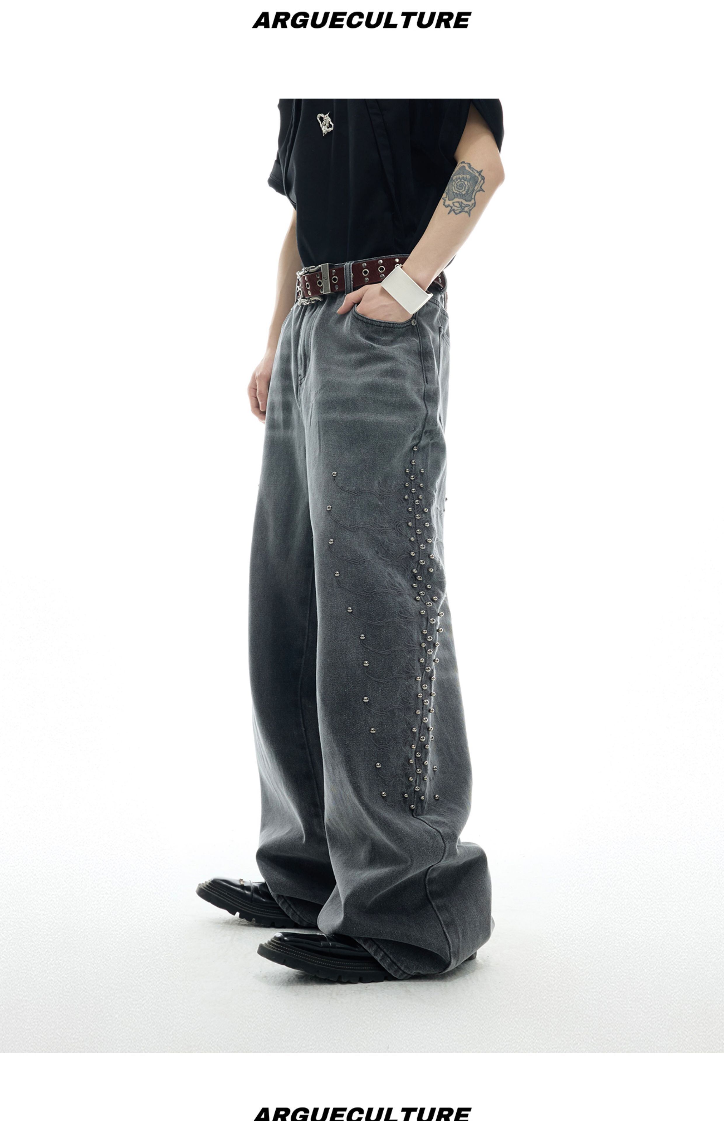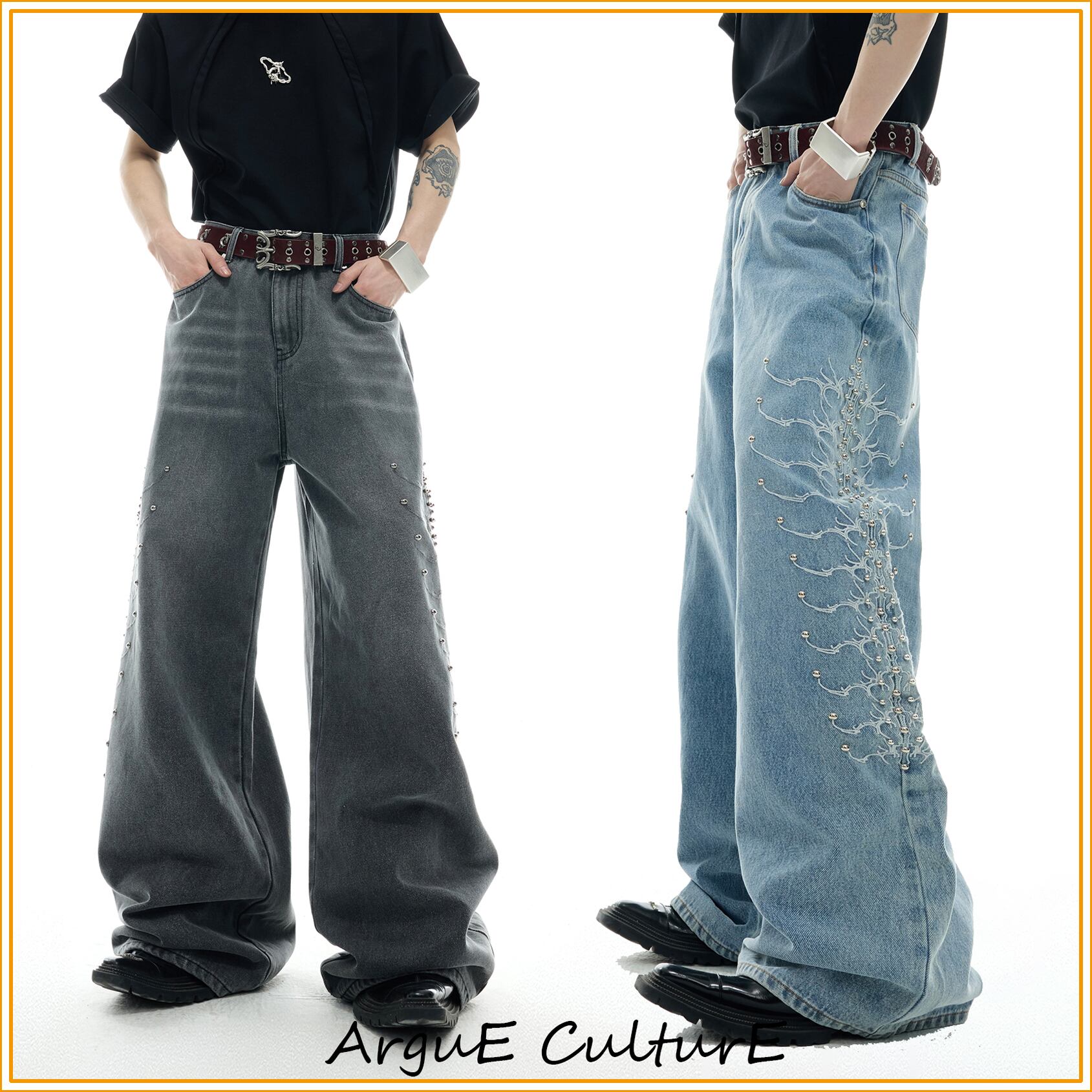 Argue Culture デニムパンツ 刺繍 スタッズ ストレート ジーンズ