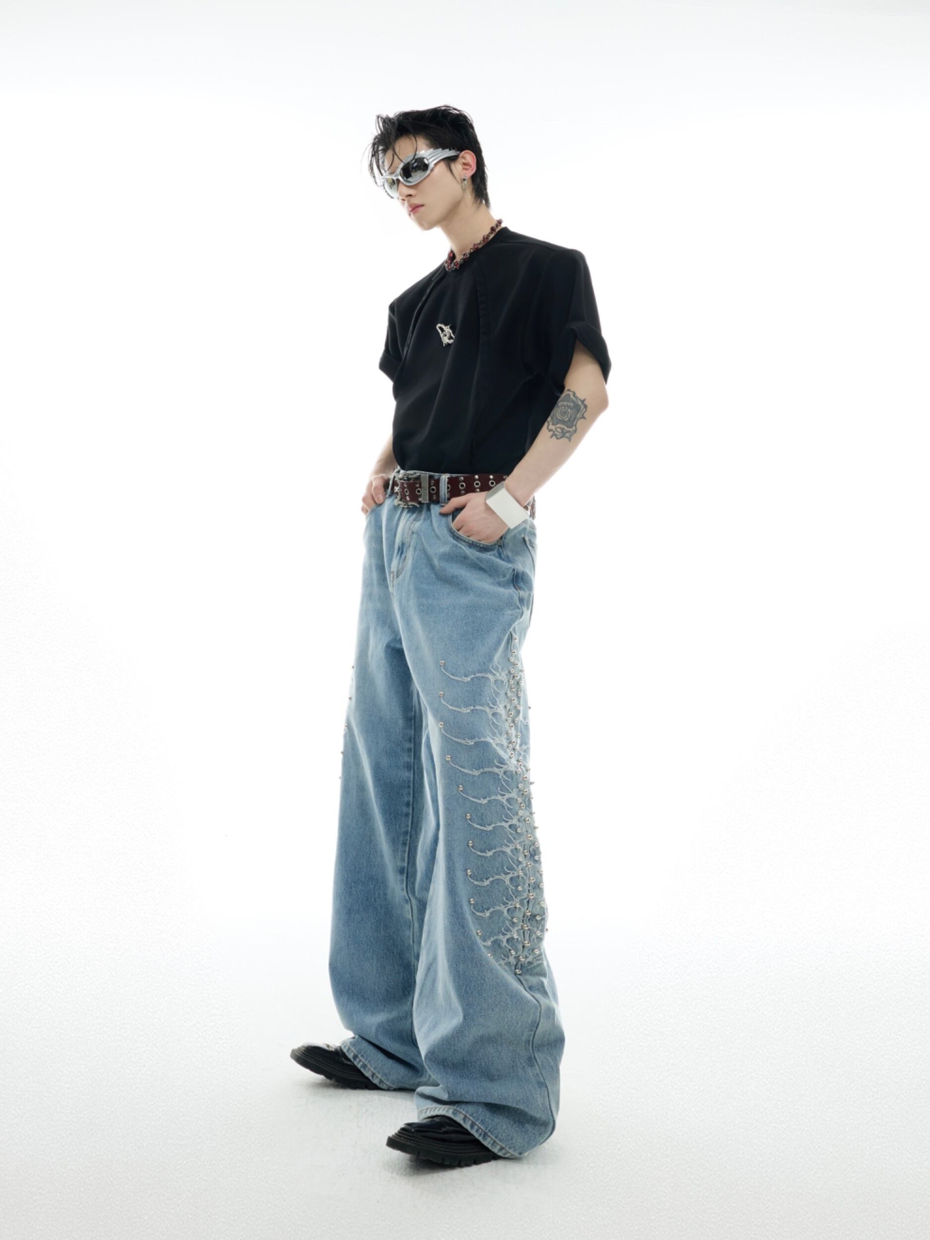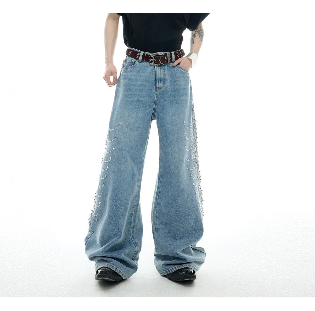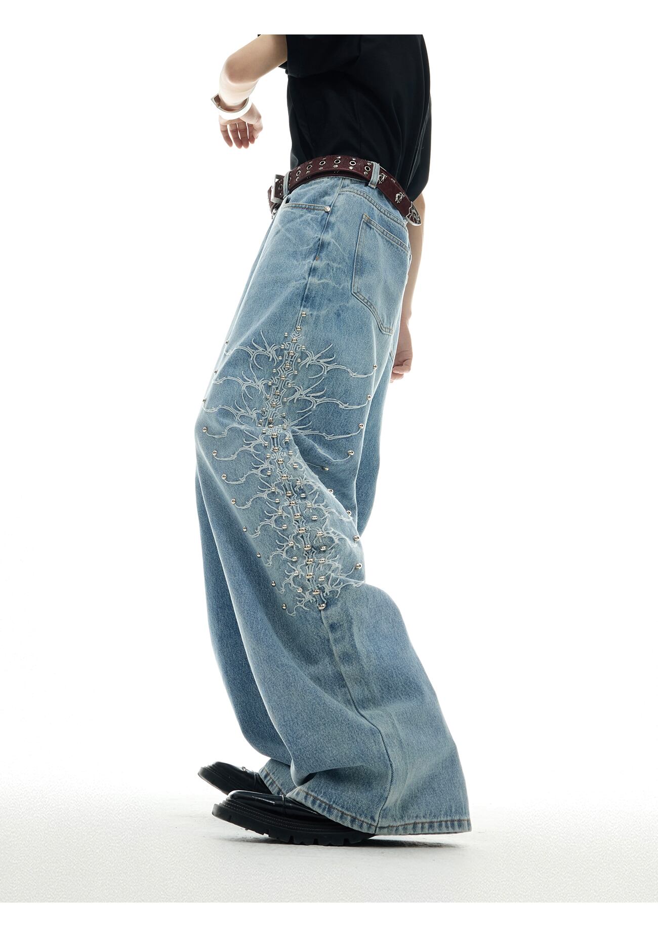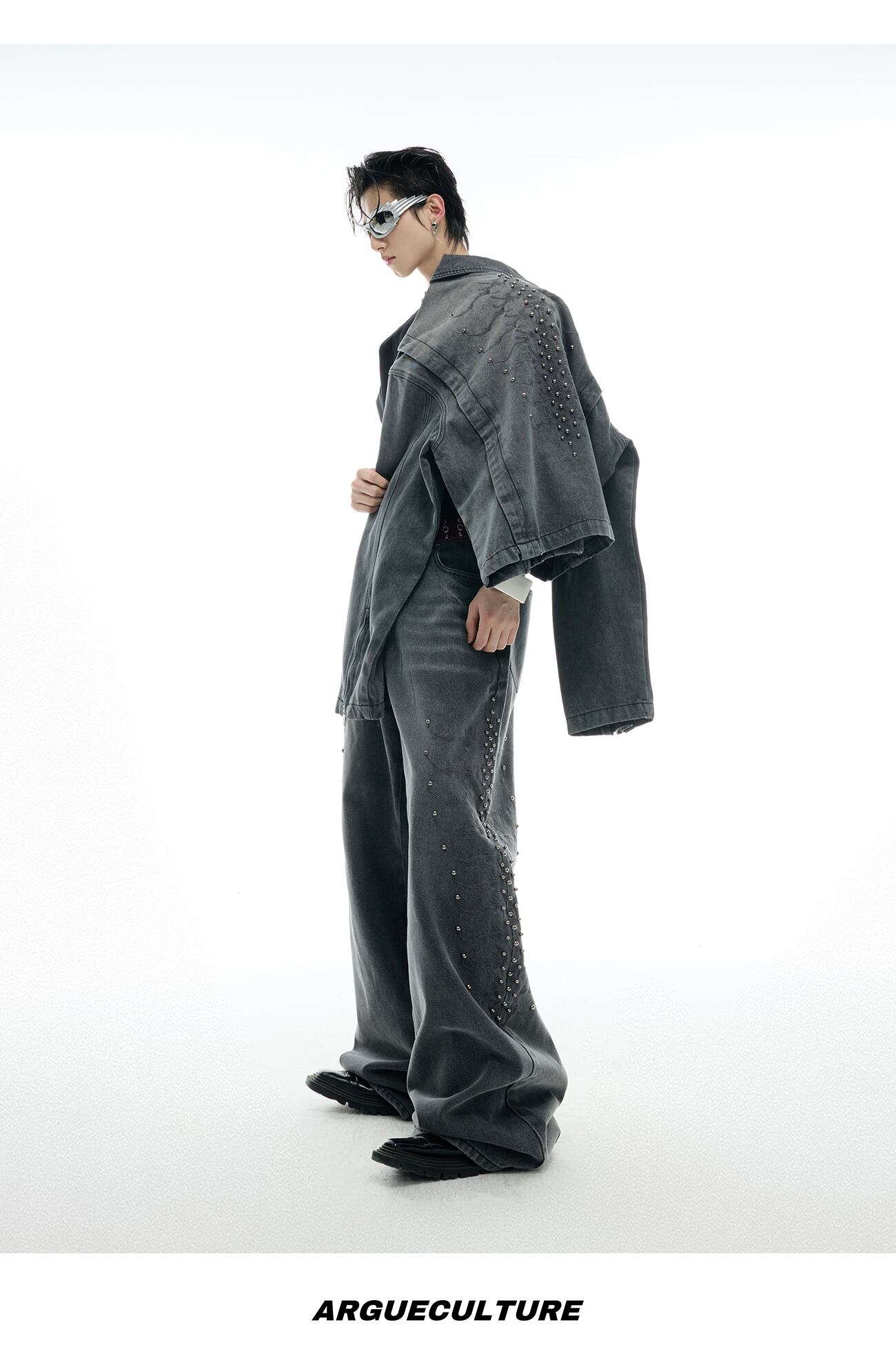 Argue Culture デニムパンツ 刺繍 スタッズ ストレート ジーンズ