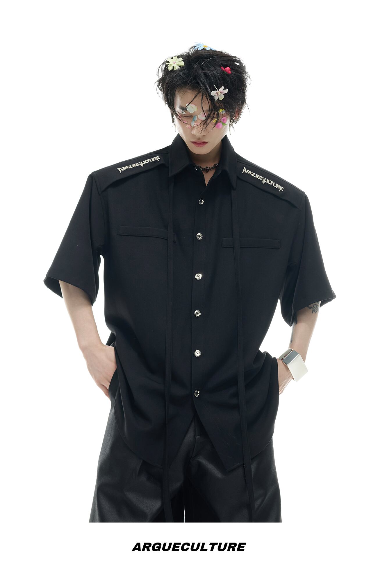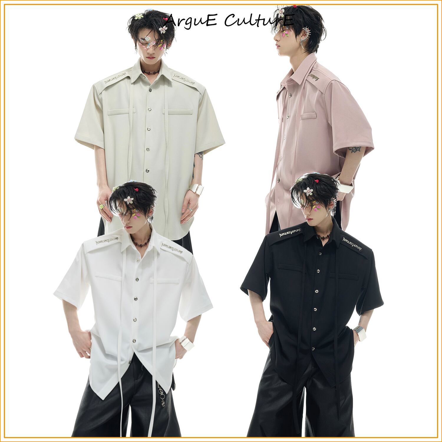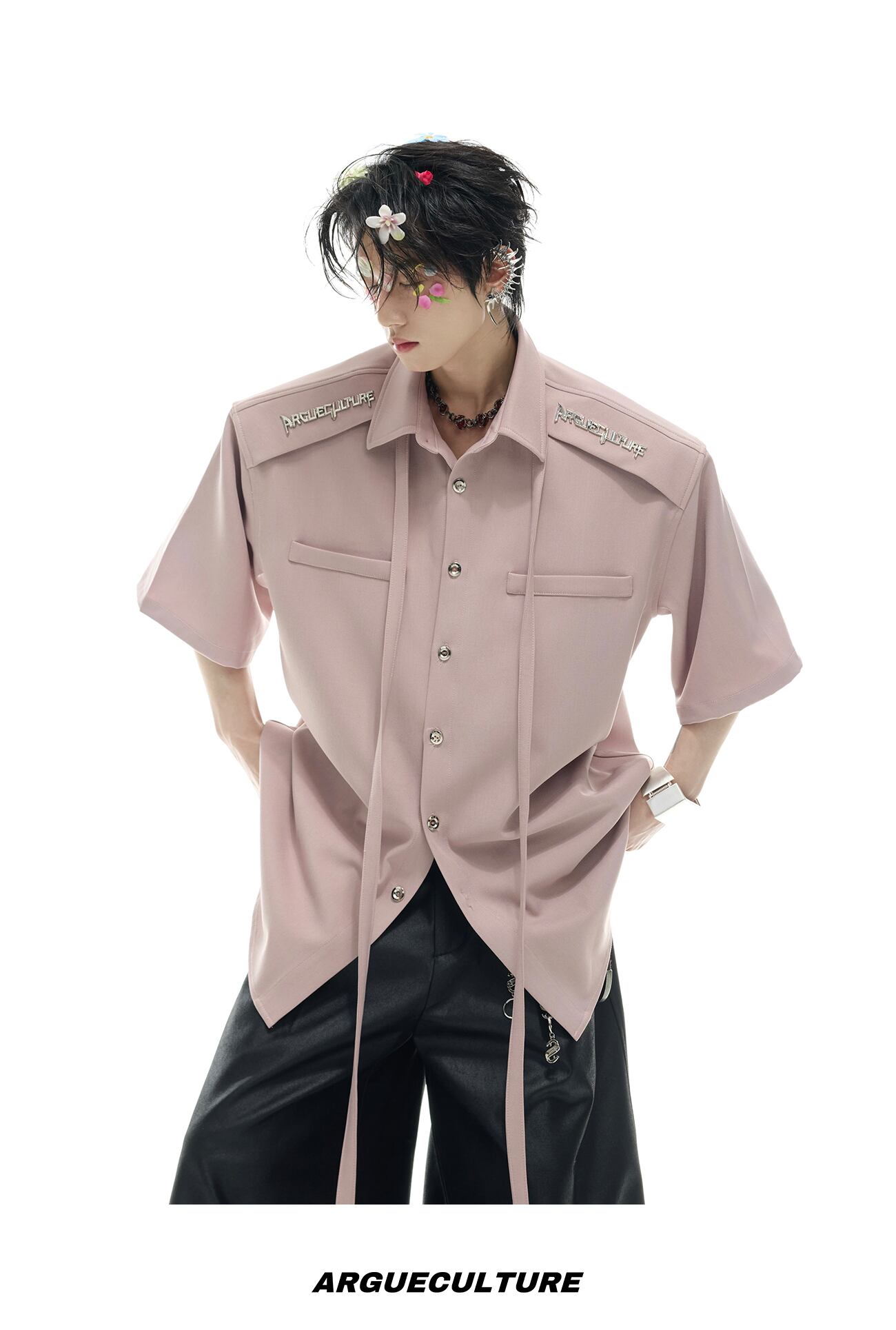 Argue Culture 半袖シャツ メタルロゴ リボンデザイン カジュアル
