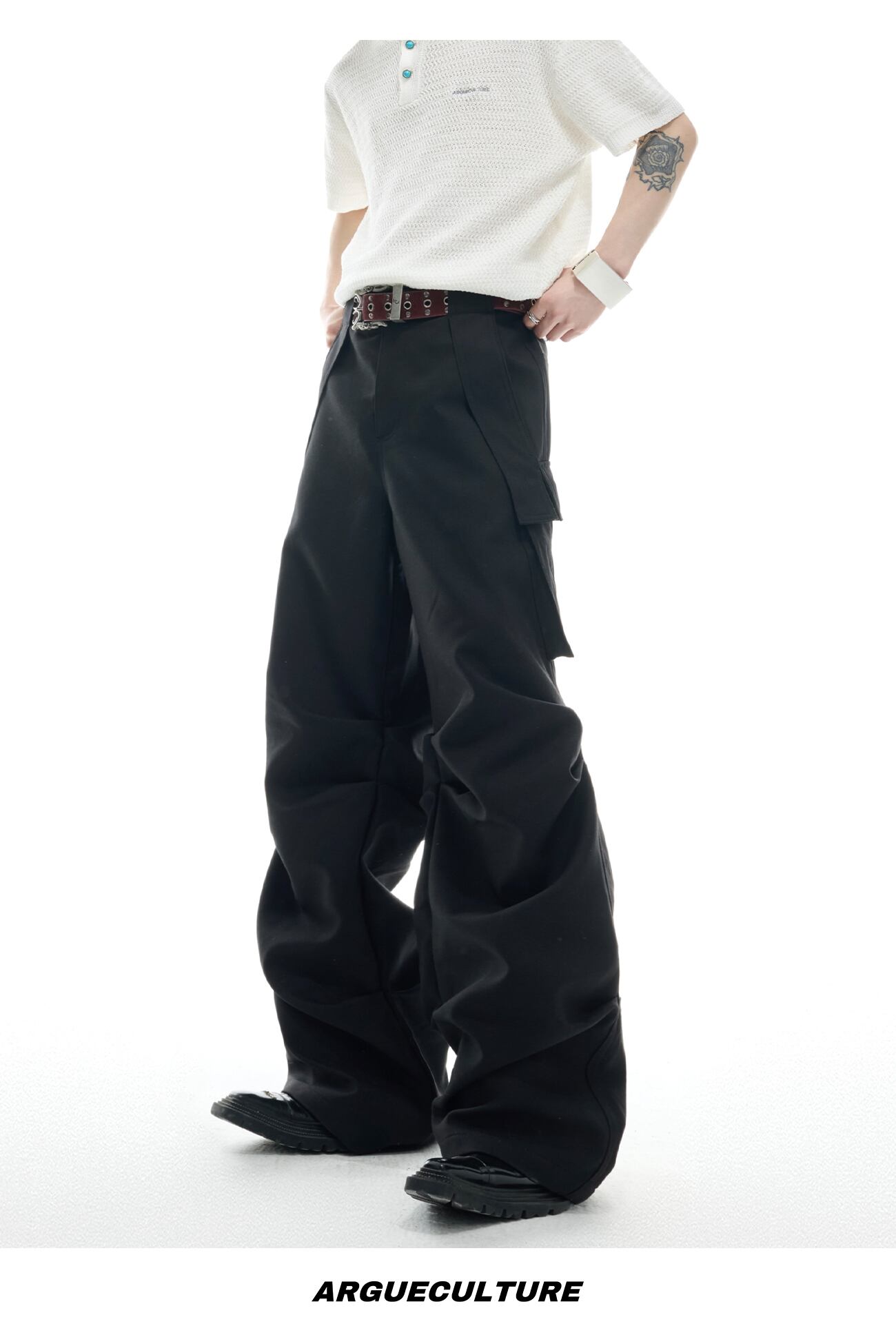 Argue Culture ロングパンツ 無地 ルーズ 男女兼用 カーゴパンツ