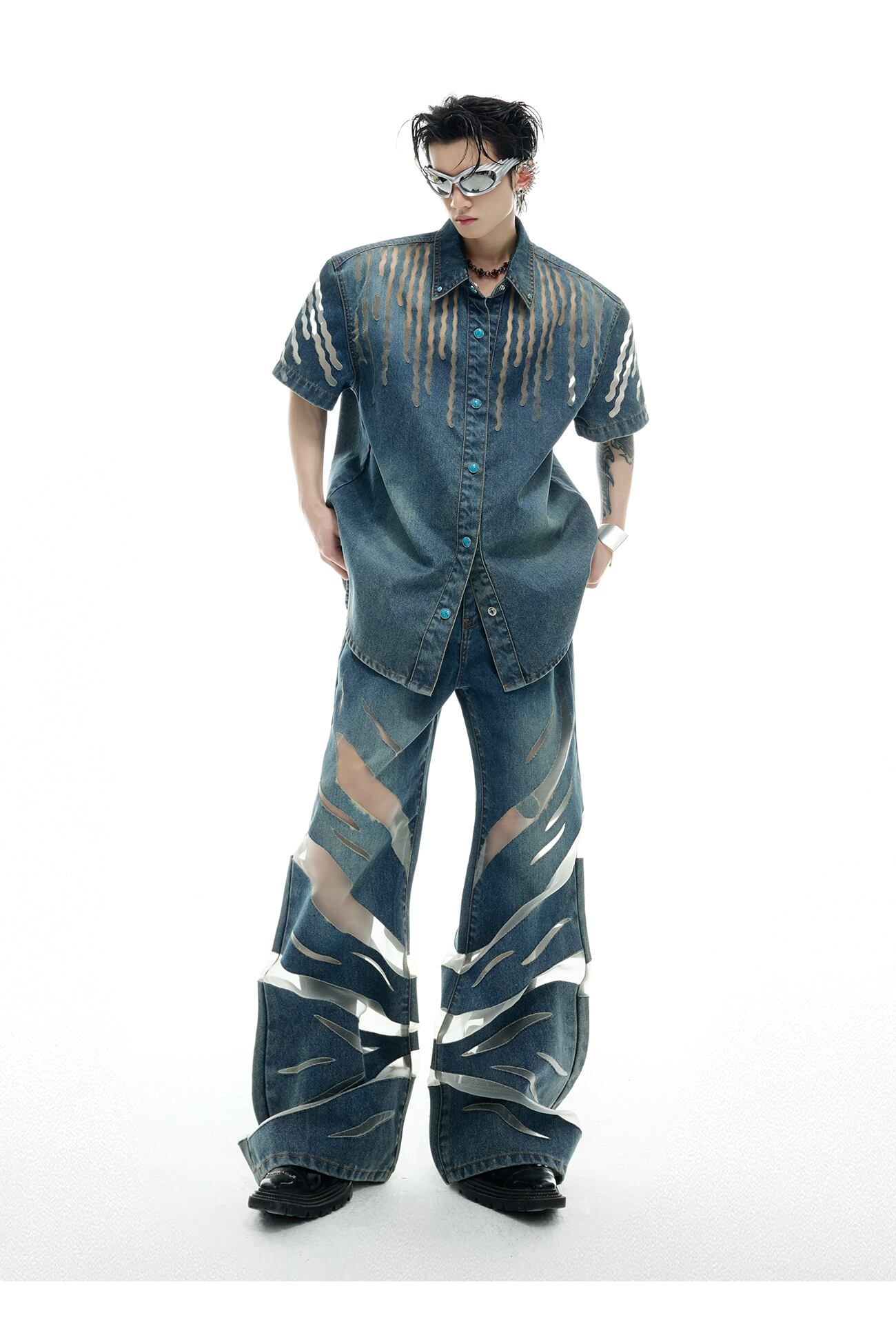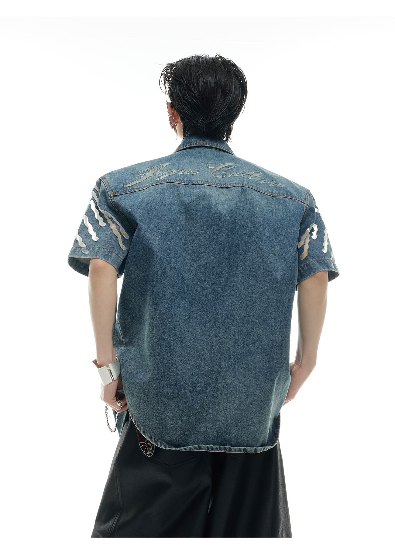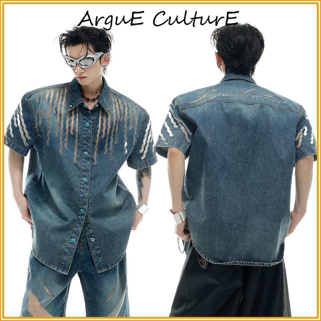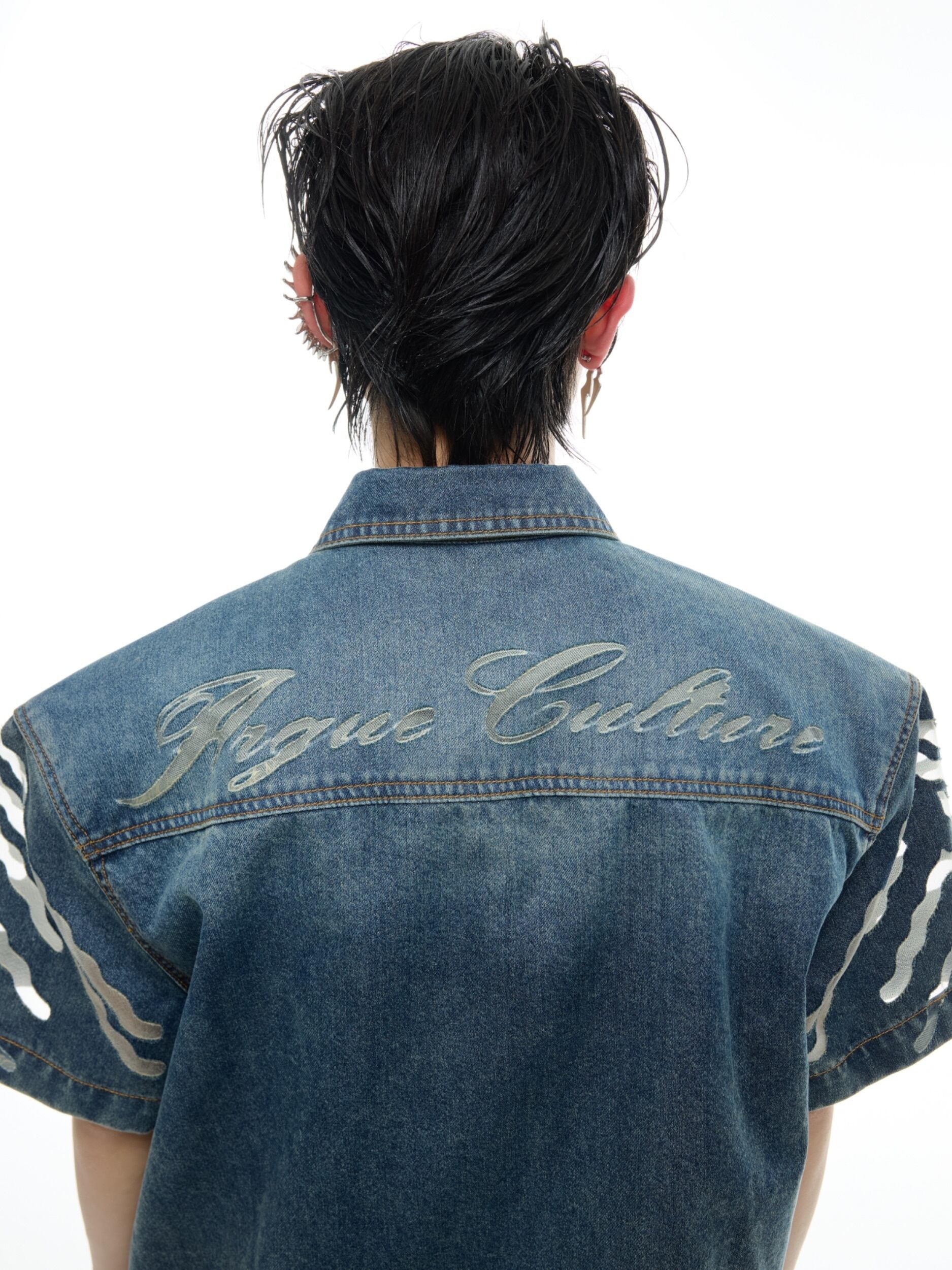Argue Culture 半袖 デニムジャケット メッシュ切替 おしゃれ