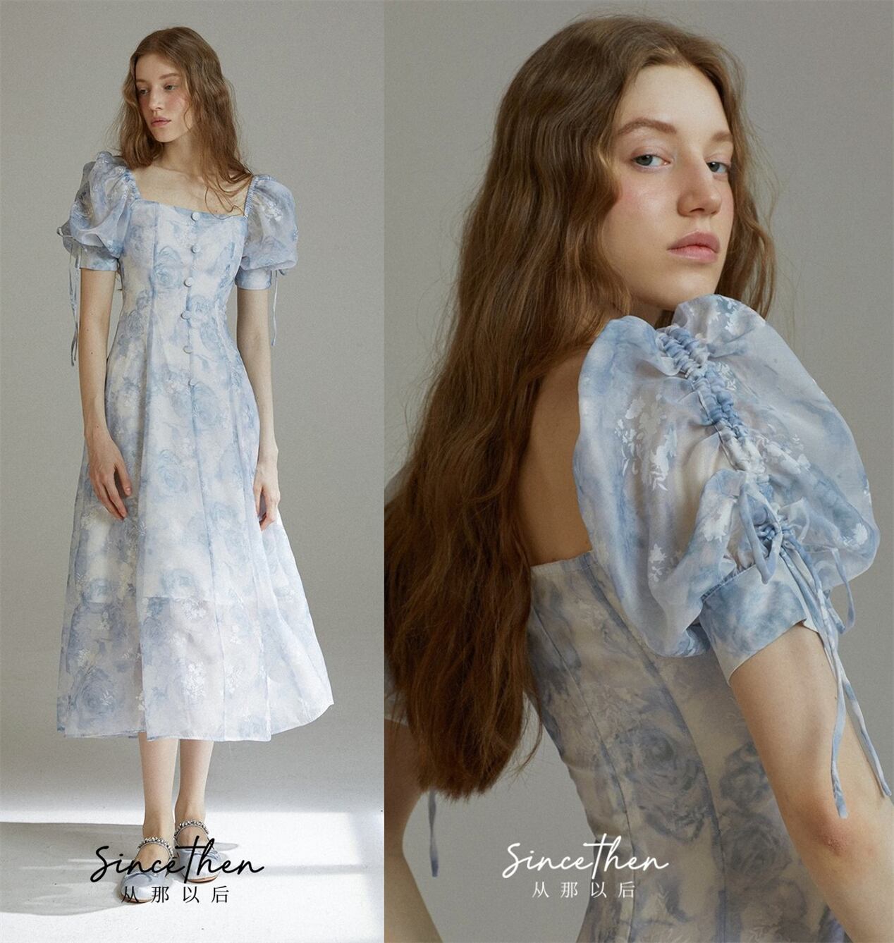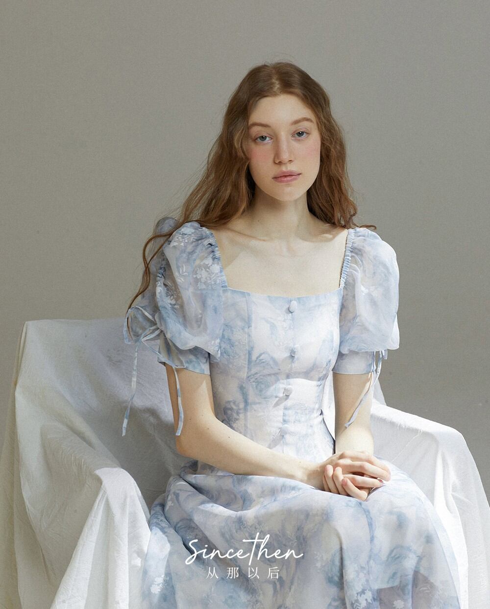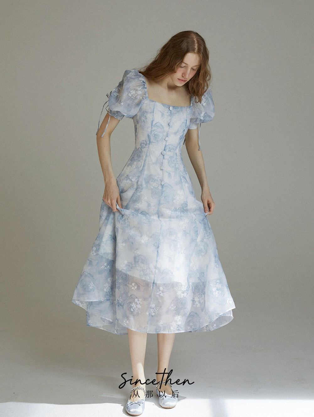 Since Then パフスリーブワンピースドレスエレガント