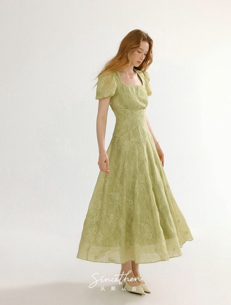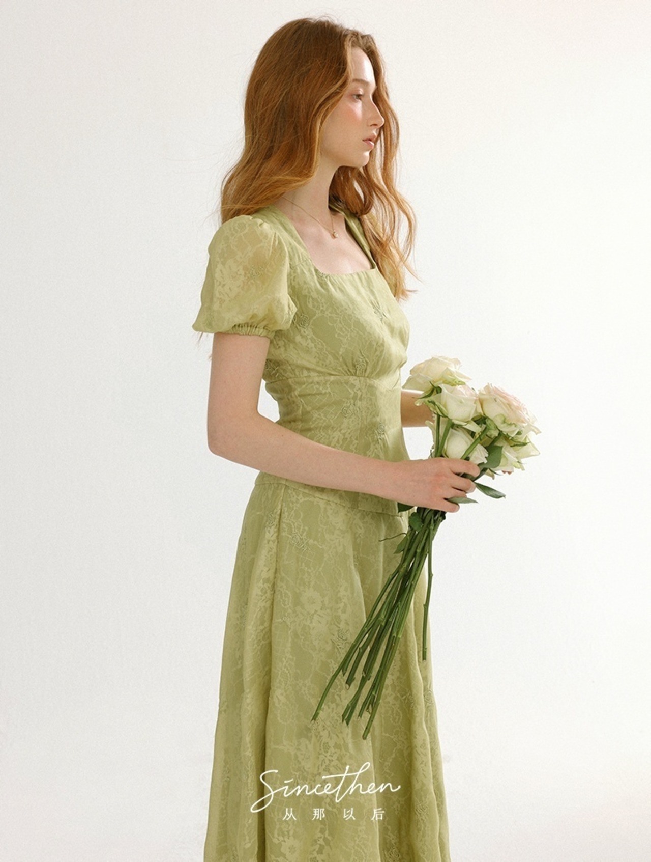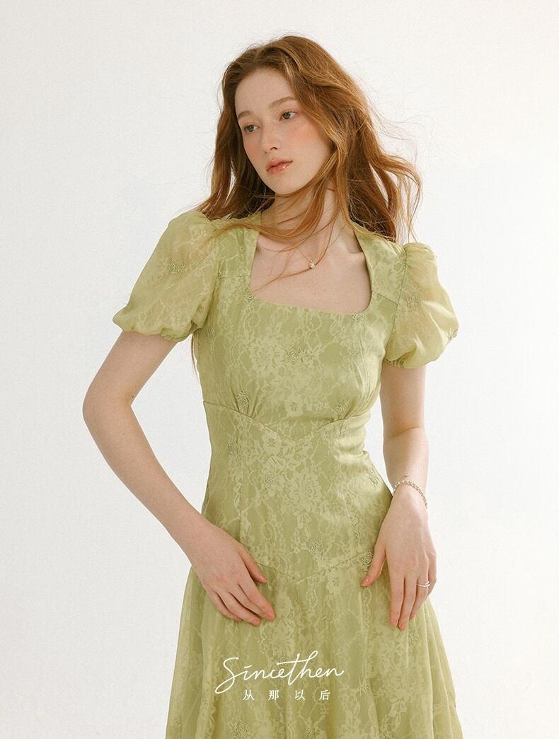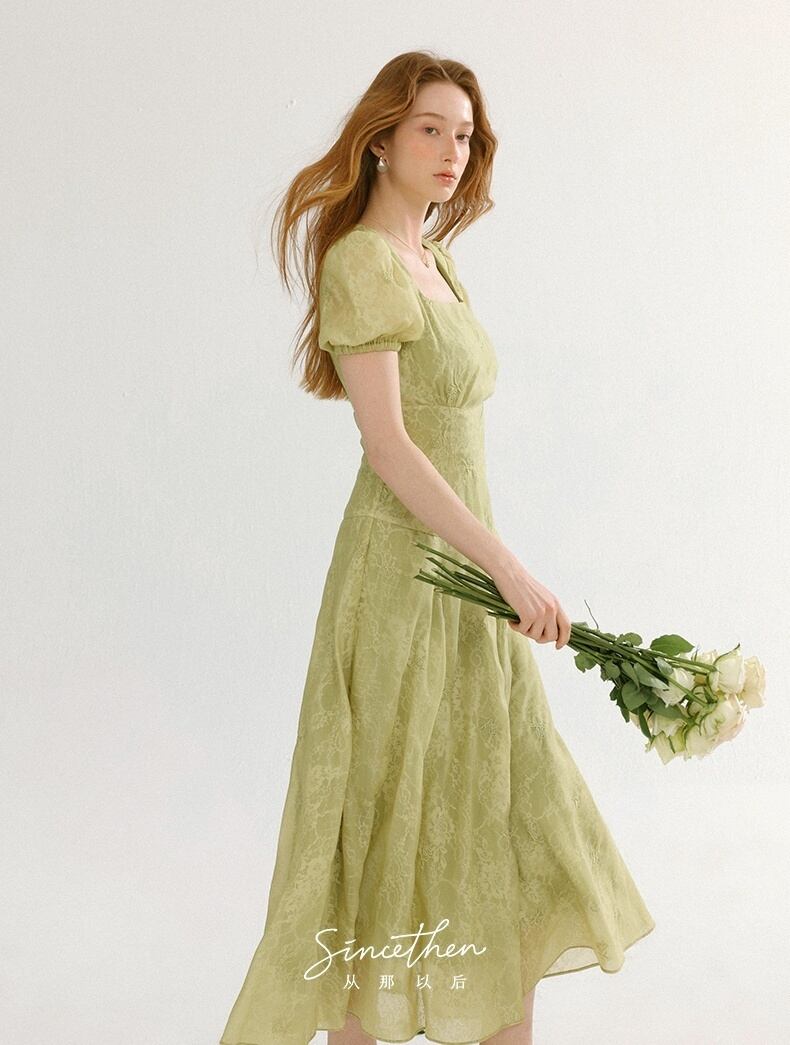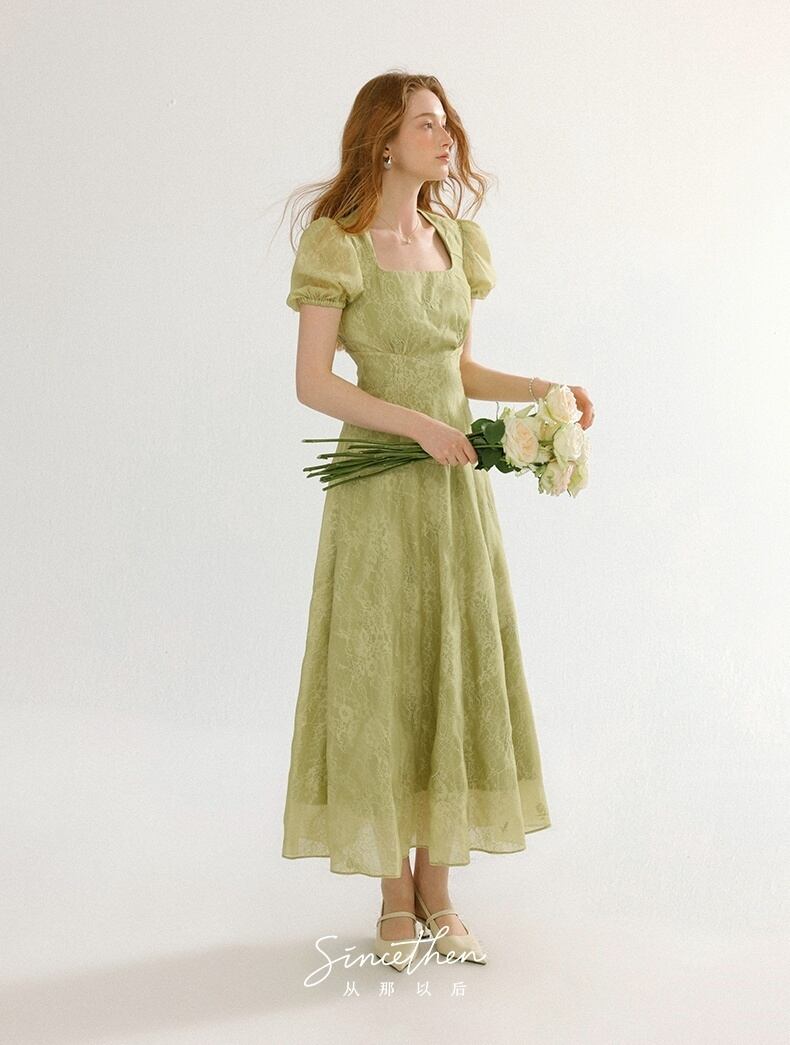 Since Then スクウェアカラー半袖ワンピース夏きれい