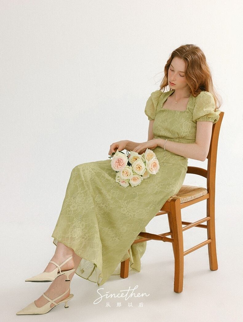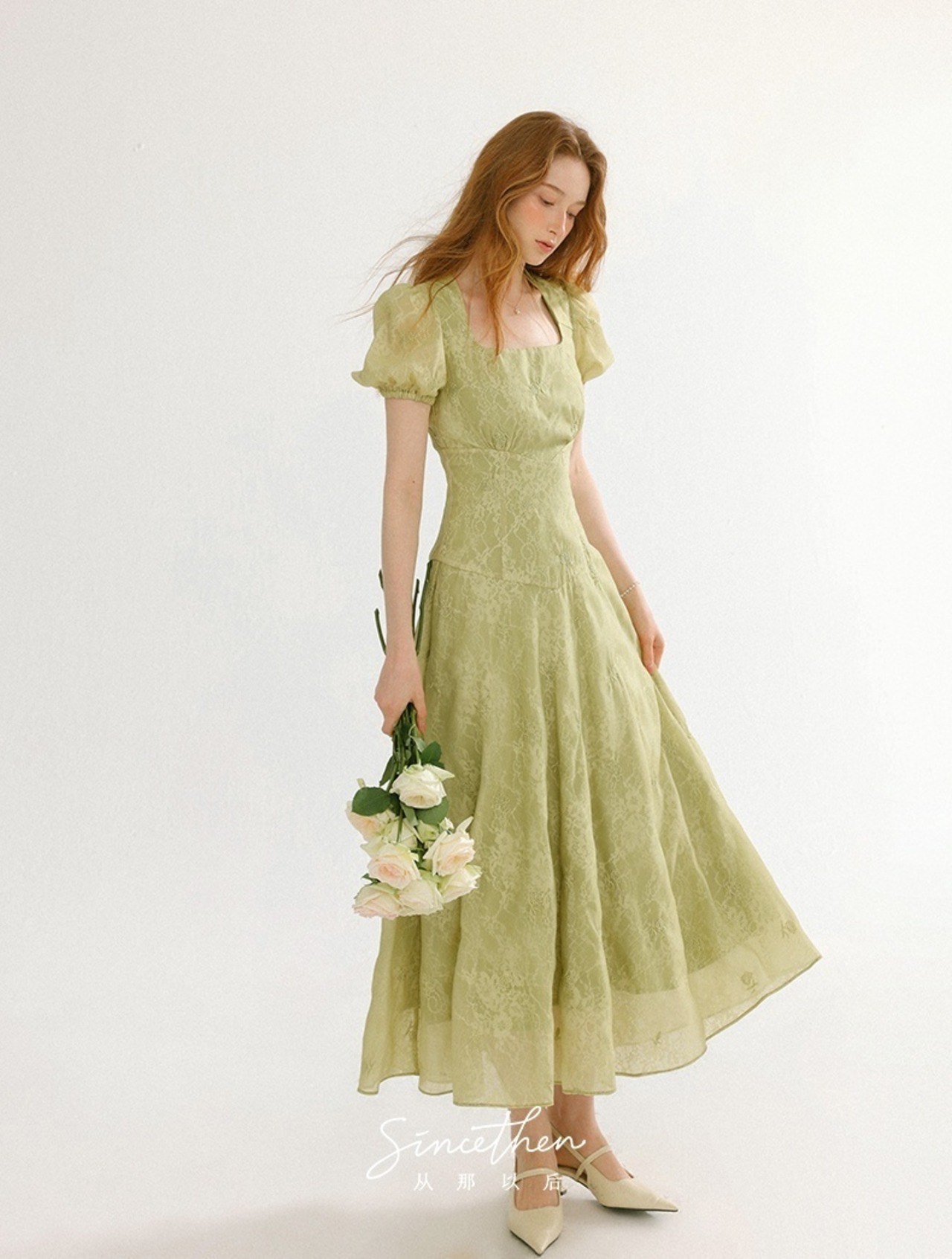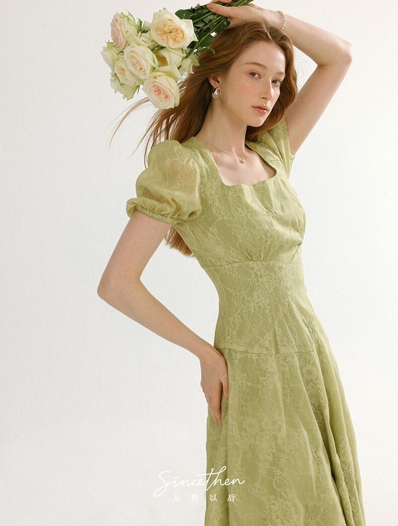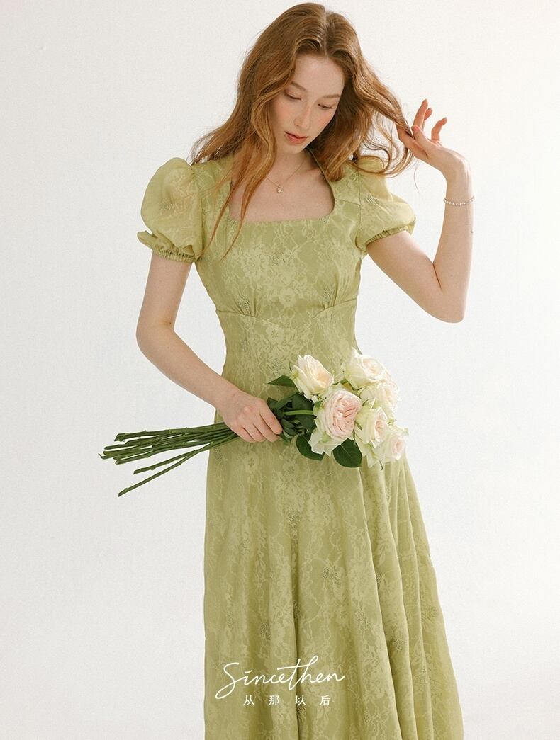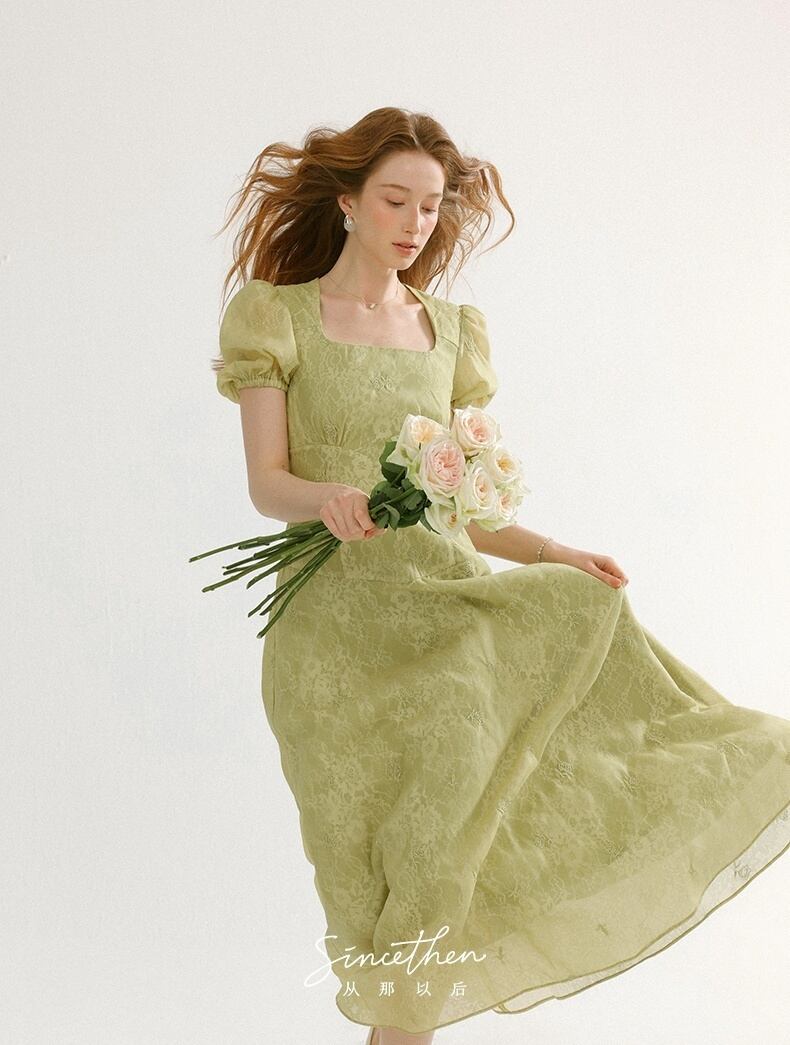 Since Then スクウェアカラー半袖ワンピース夏きれい