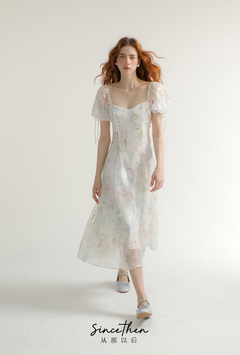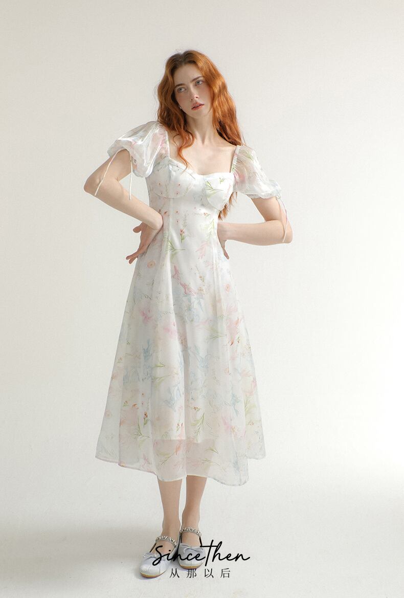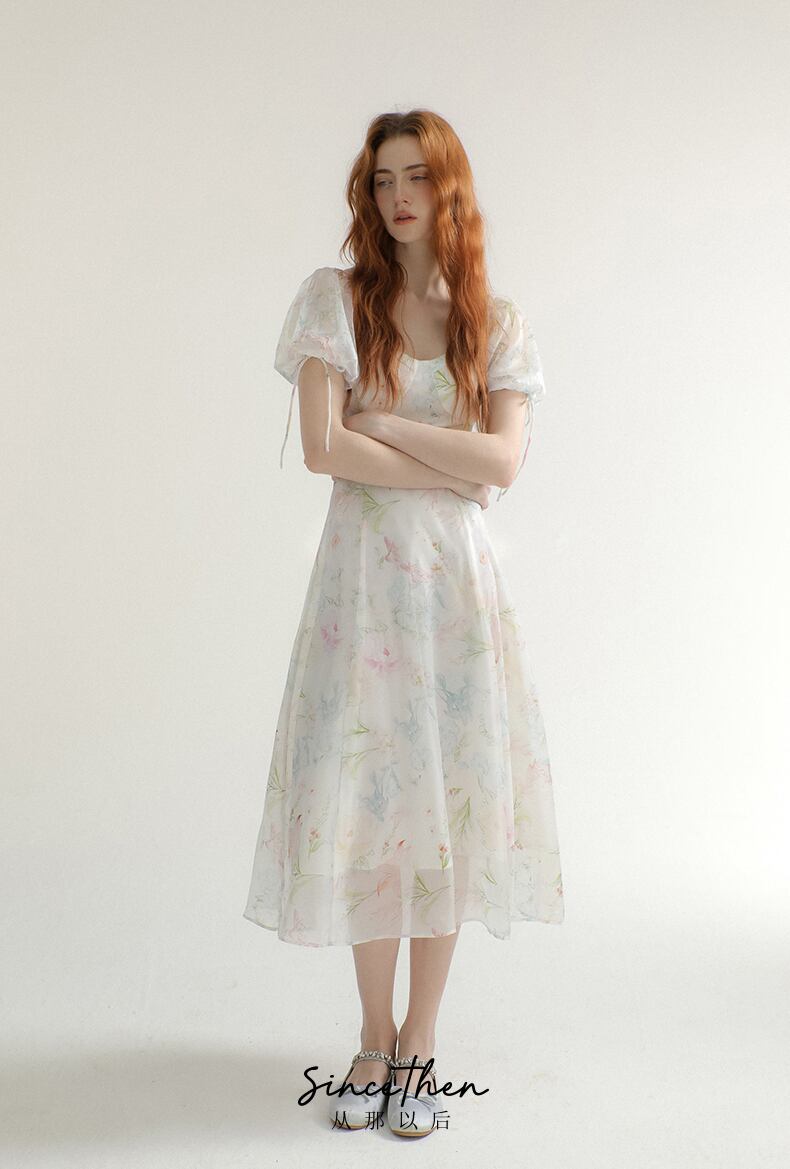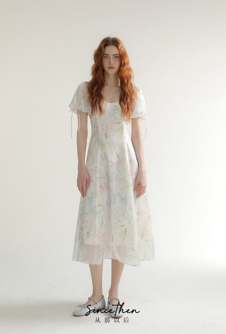 Since Then 花柄パフスリーブワンピースきれいエレガント