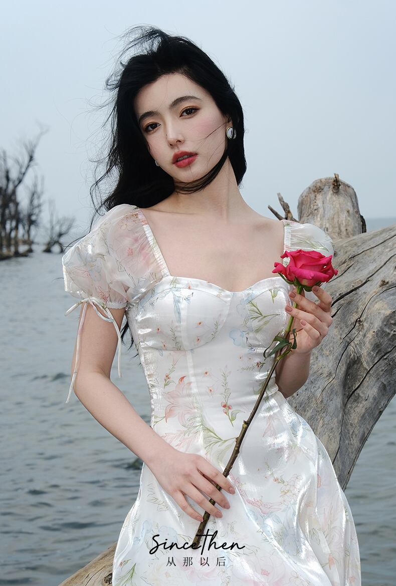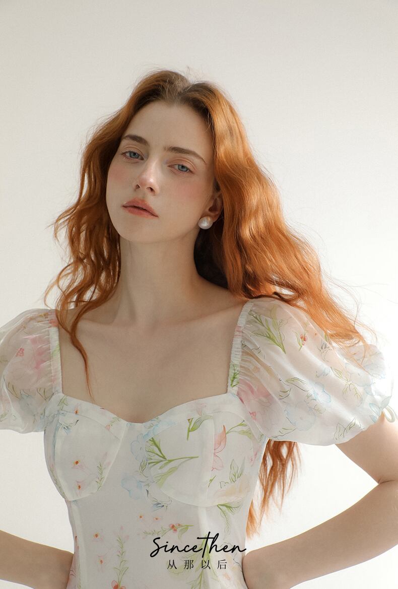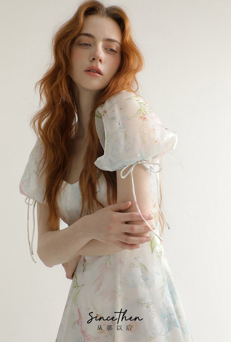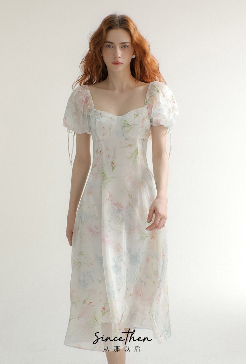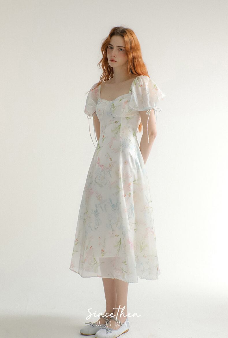 Since Then 花柄パフスリーブワンピースきれいエレガント