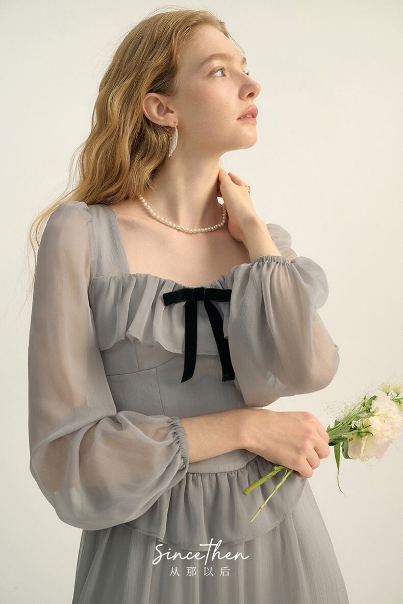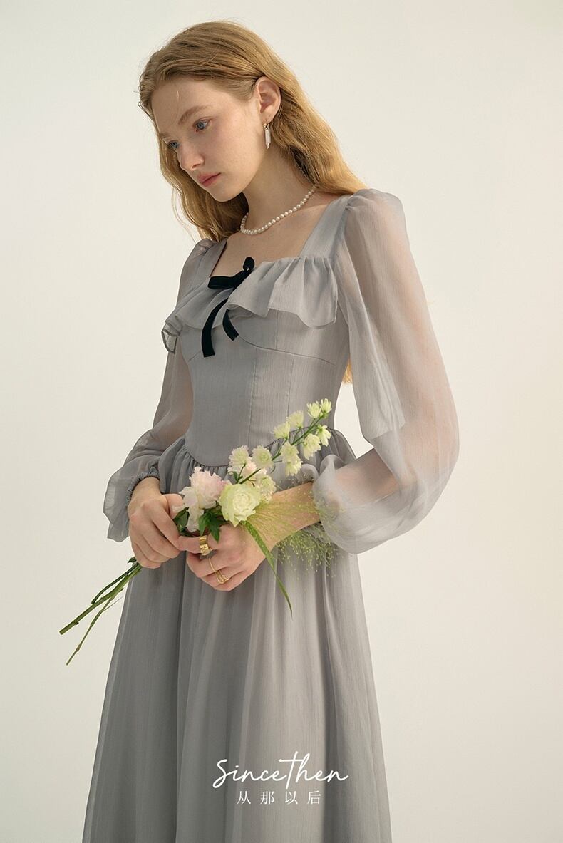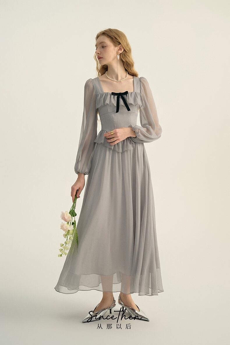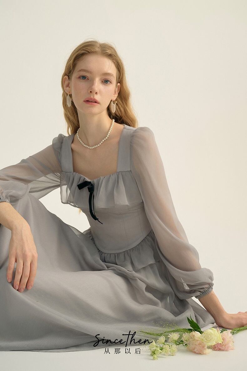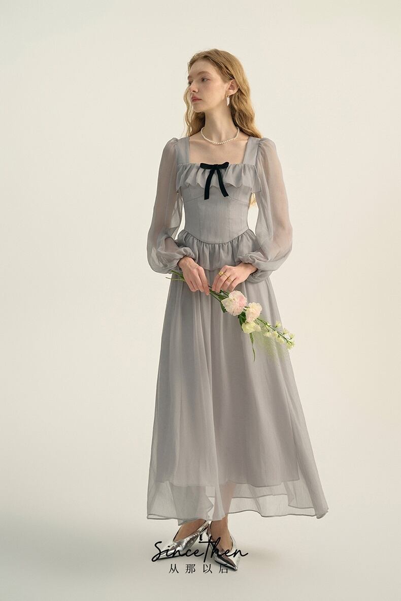 Since Then スクウェアカラー長袖ワンピースきれい