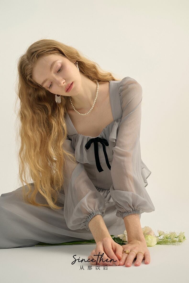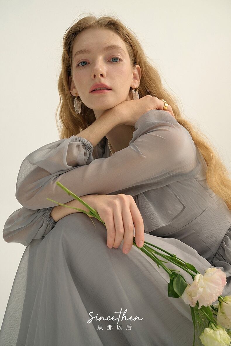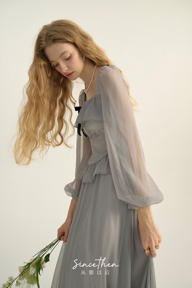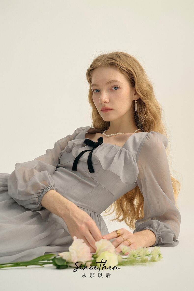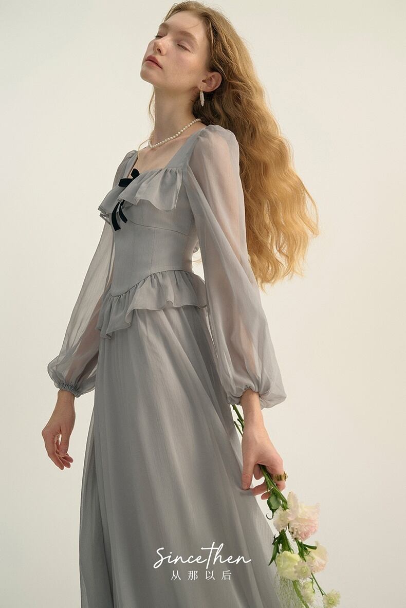 Since Then スクウェアカラー長袖ワンピースきれい