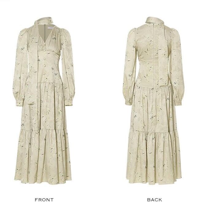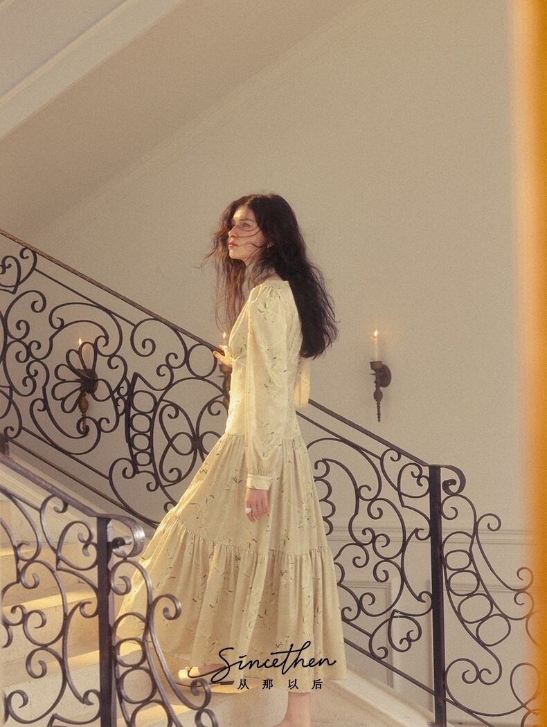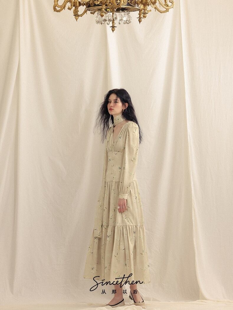 Since Then 花柄 グリーン 長袖ワンピース エレガント 春秋